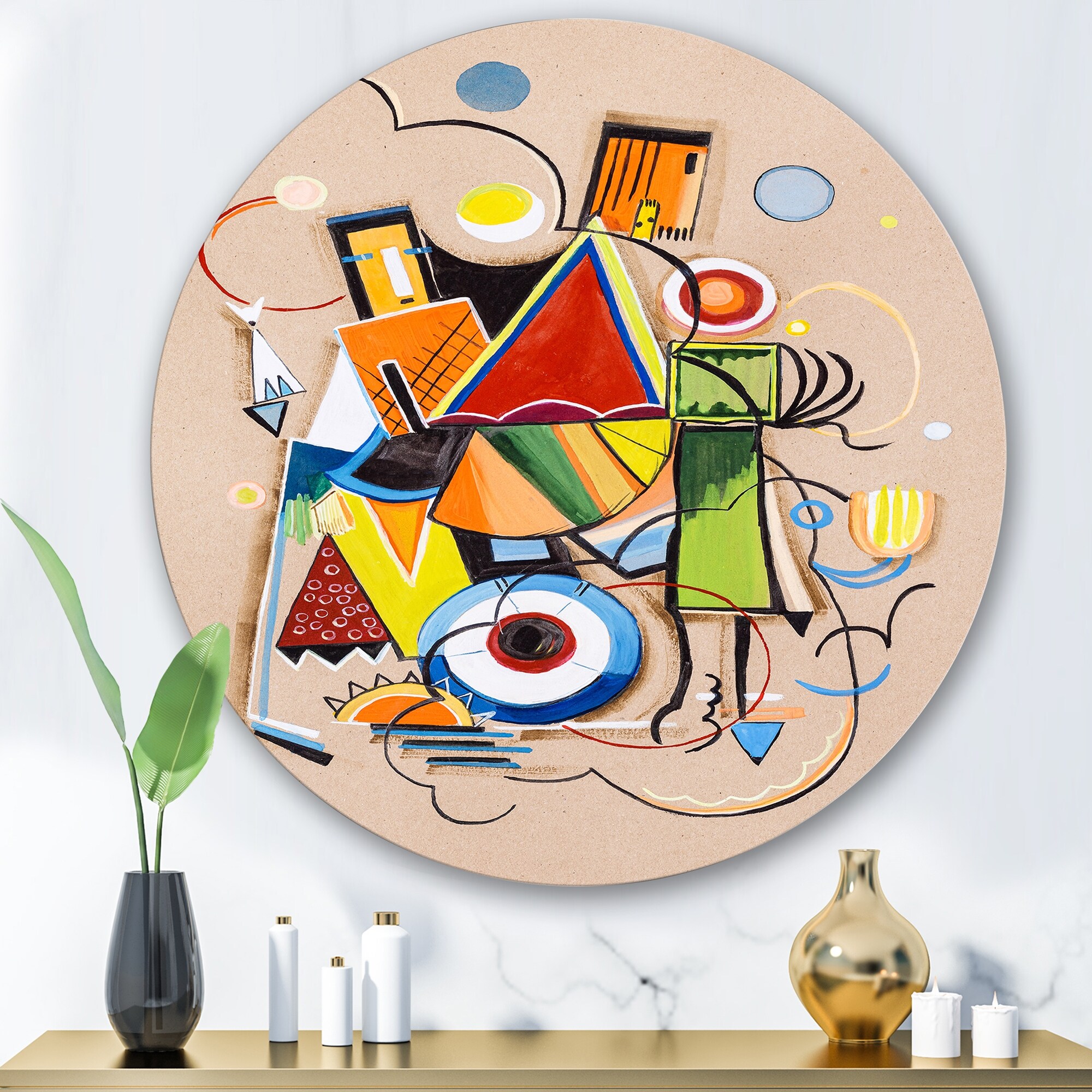 Designart 'Colored Geometric Abstract Compositions I' Modern Metal Circle Wall Art