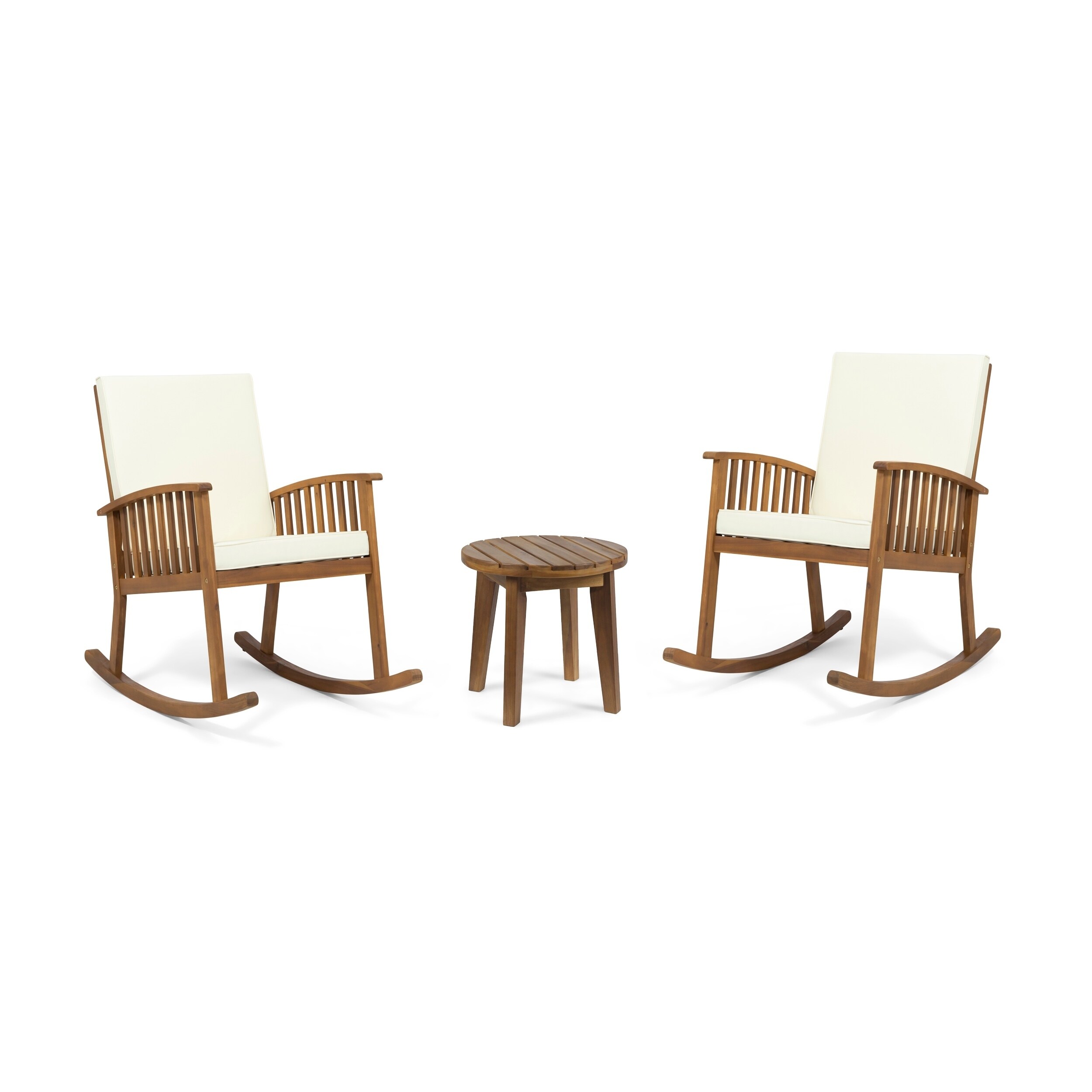 Abbottsford Outdoor 2 Seater Acacia Wood Rocking Chairs and Side Table Set by Christopher Knight Home