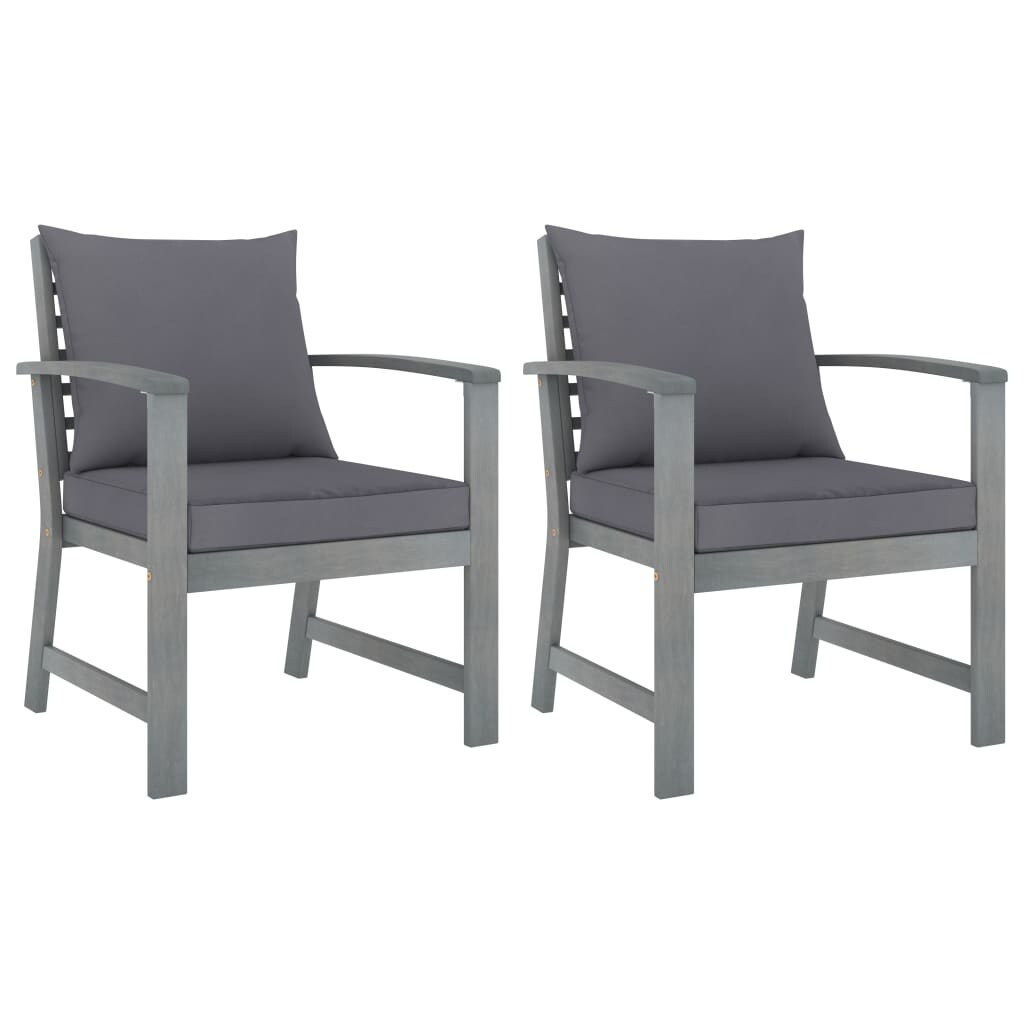 vidaXL Patio Chairs with Cushions 2 pcs Gray Solid Acacia Wood