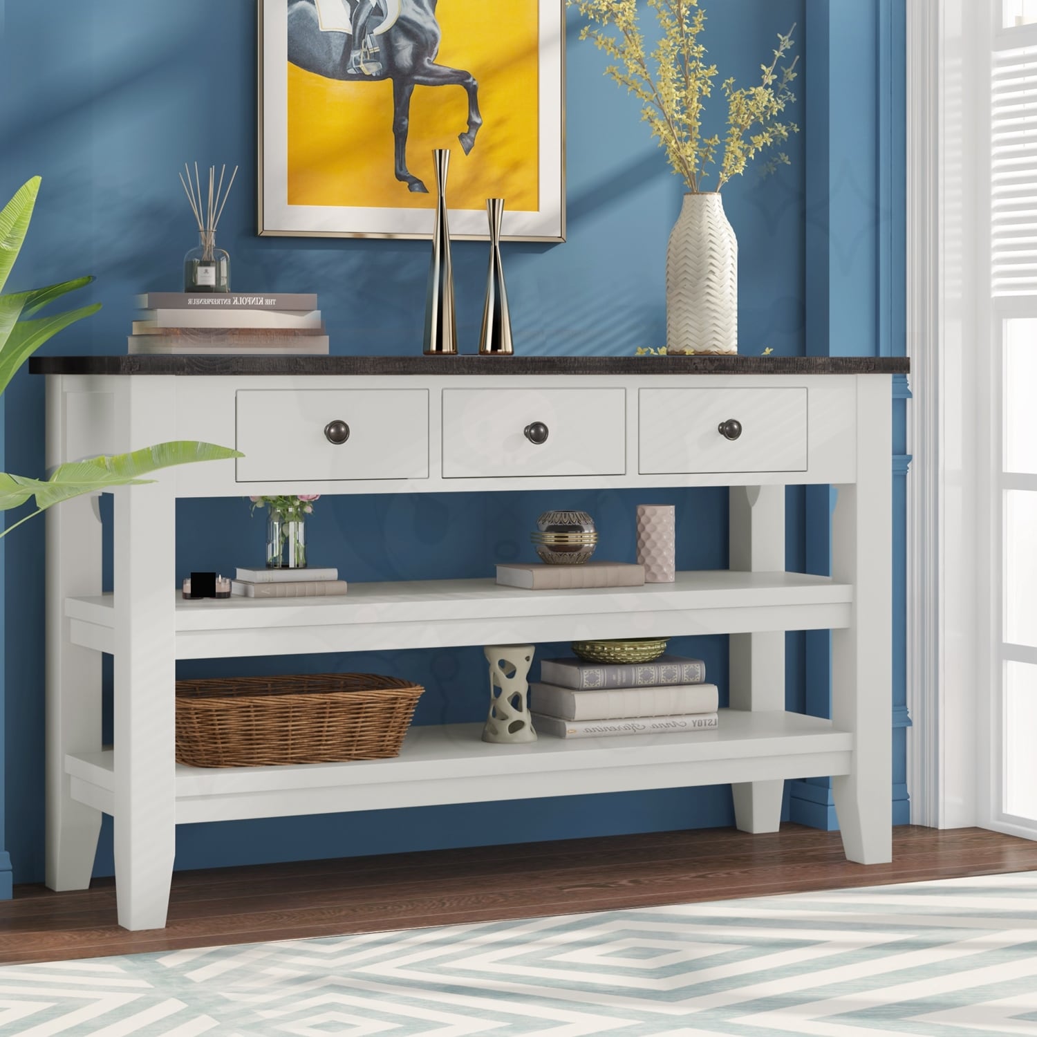 Console Table Double-Storey Tabletop with Three Drawers