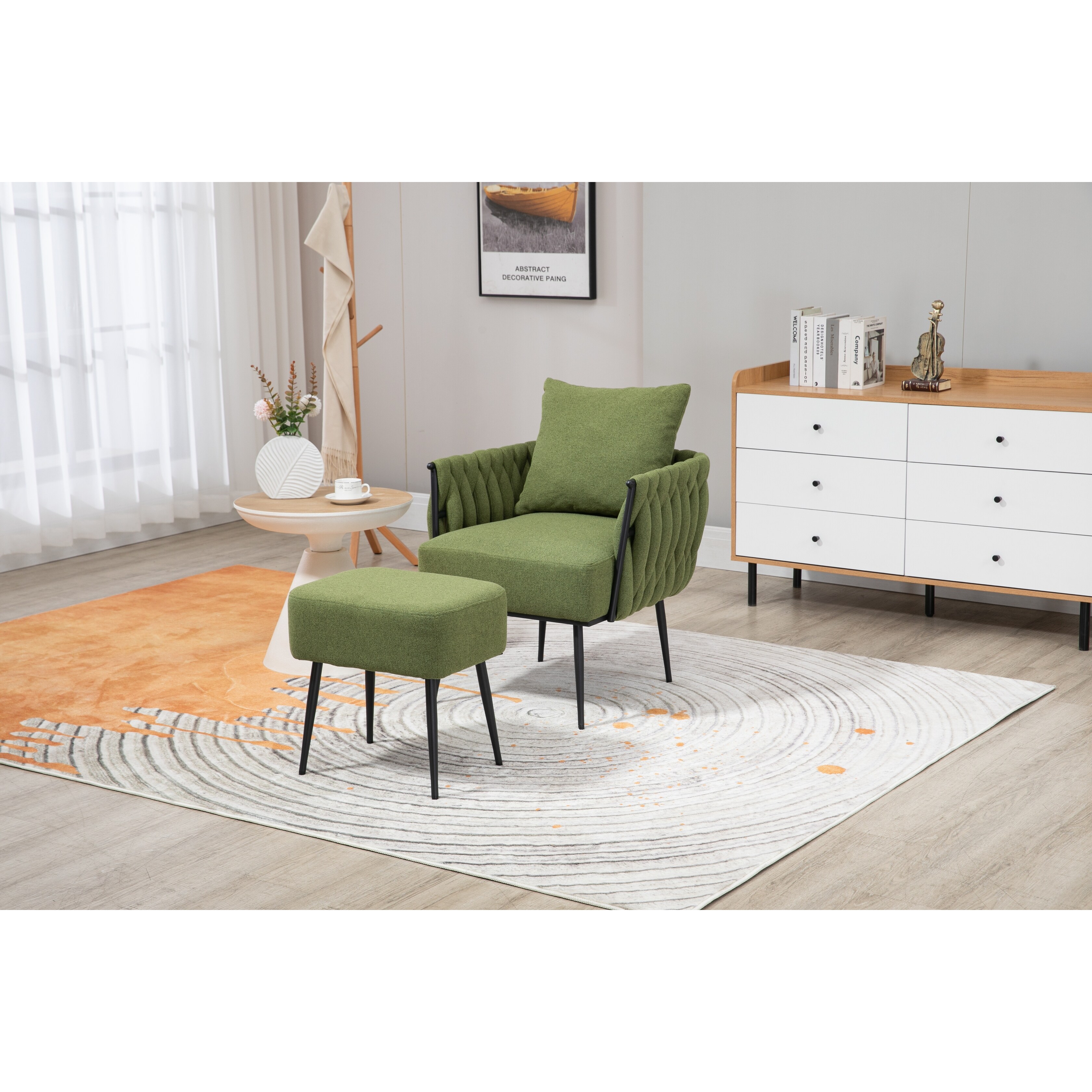 Fabric Accent Chair Leisure Chair With Ottoman