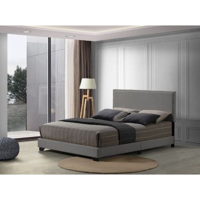 Modern Style Leandros Queen Size Upholstered Bed with Nailhead Trim Accent