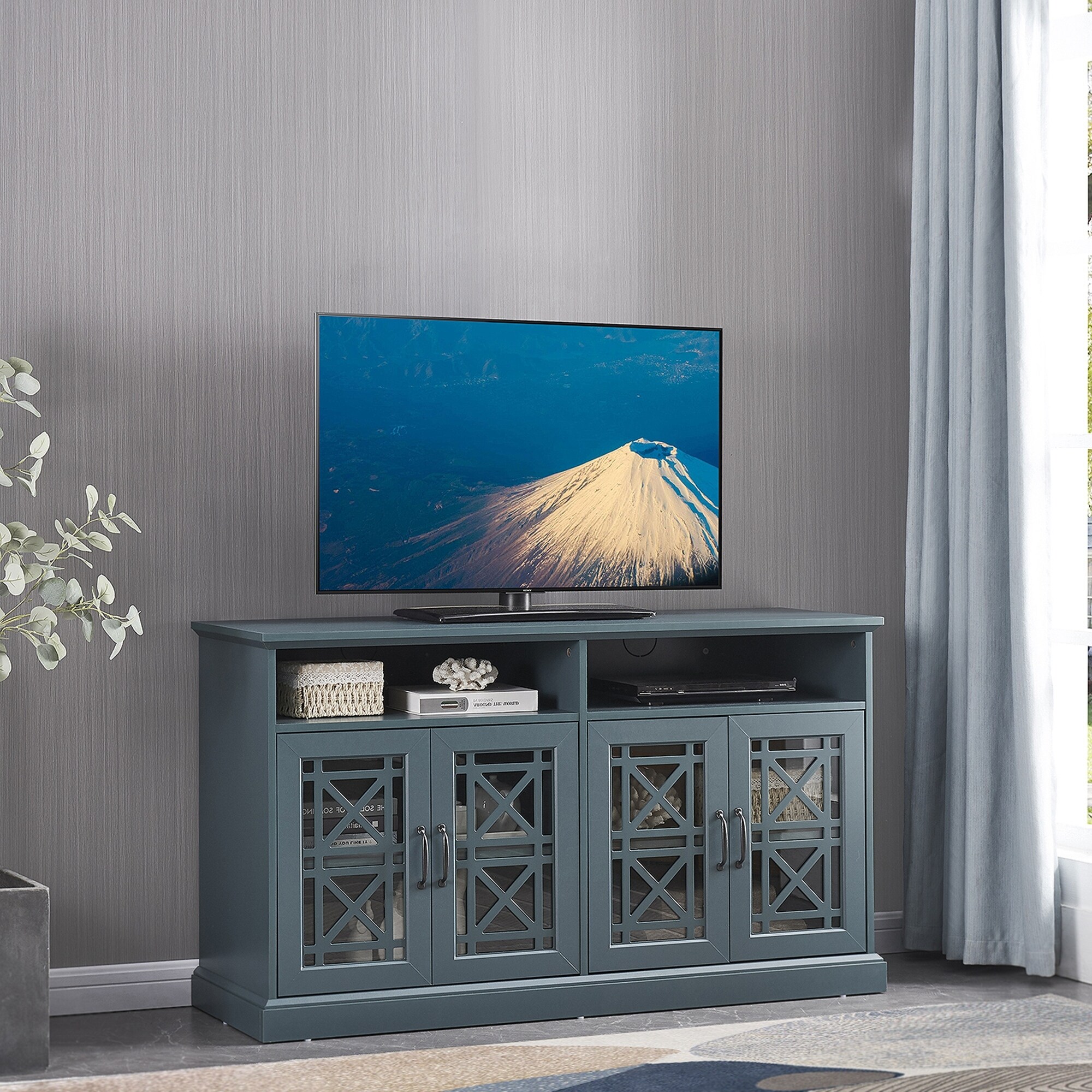 53" Console Table, Storage Buffet Cabinet, Sideboard with Glass Door and Adjustable Shelves