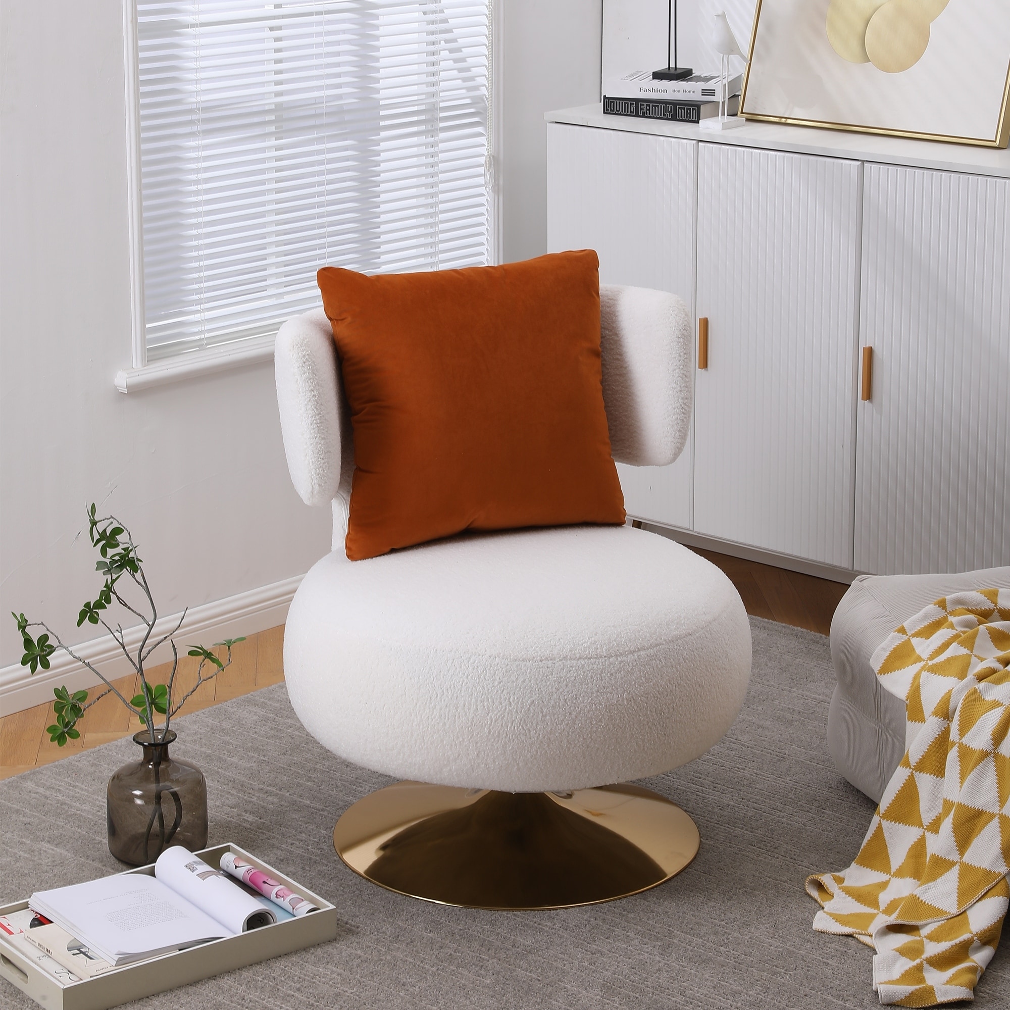 Swivel Barrel Chair, Round Accent Sofa Chair for Livingroom