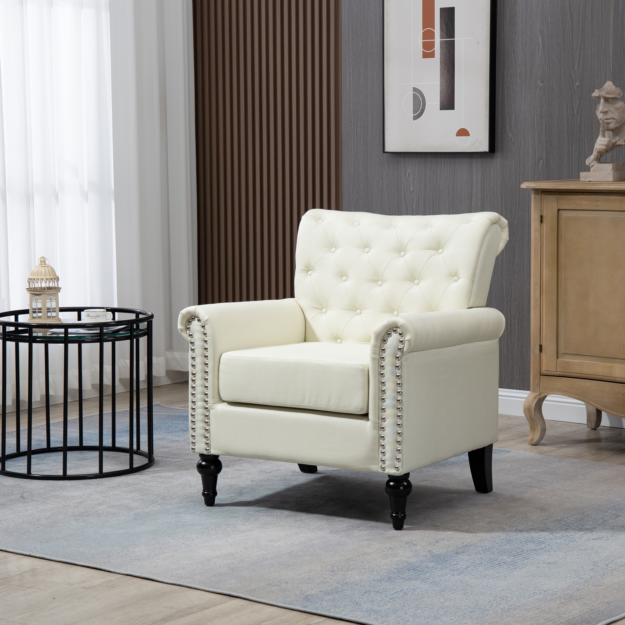 Accent Barrel Chair Living Room With Nailheads And Solid Wood Legs