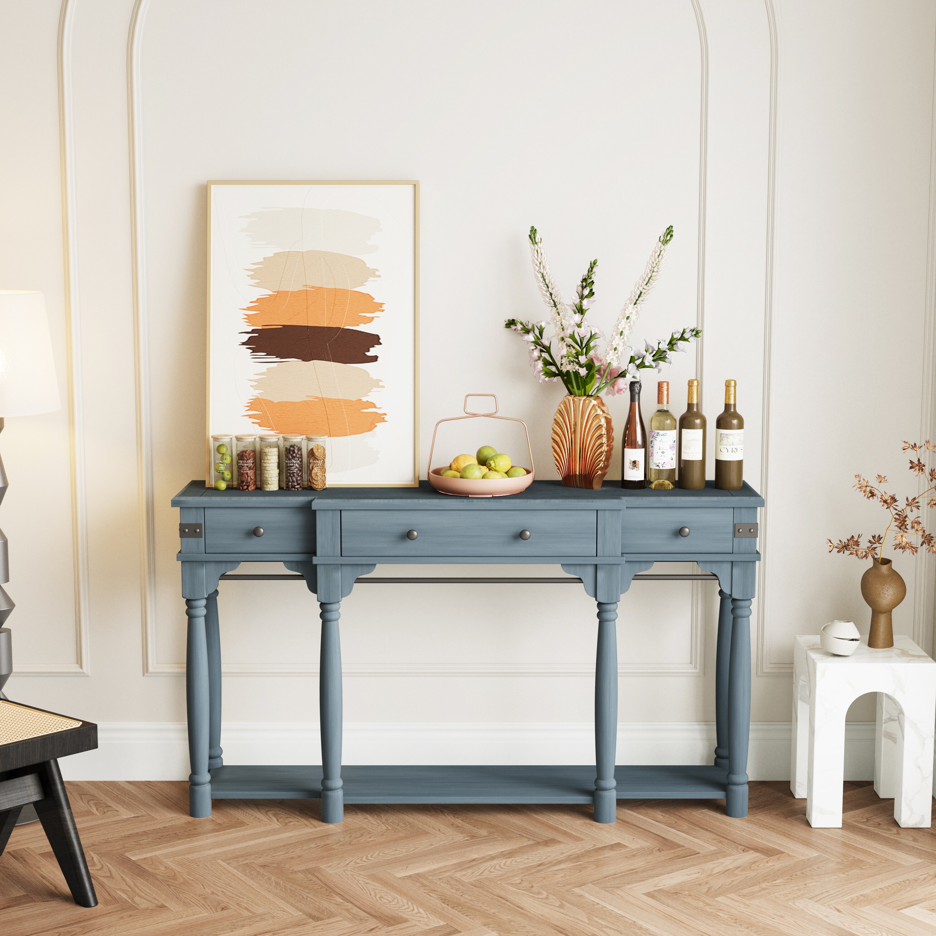 60" Console Table with Storage Drawers and Bottom Shelf