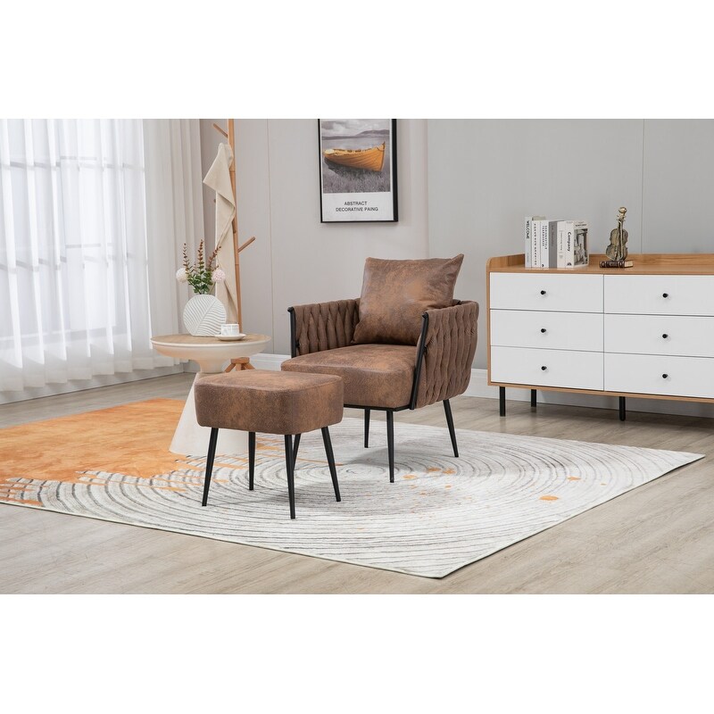 Modern Upholstered Accent Chair Armchair with Ottoman
