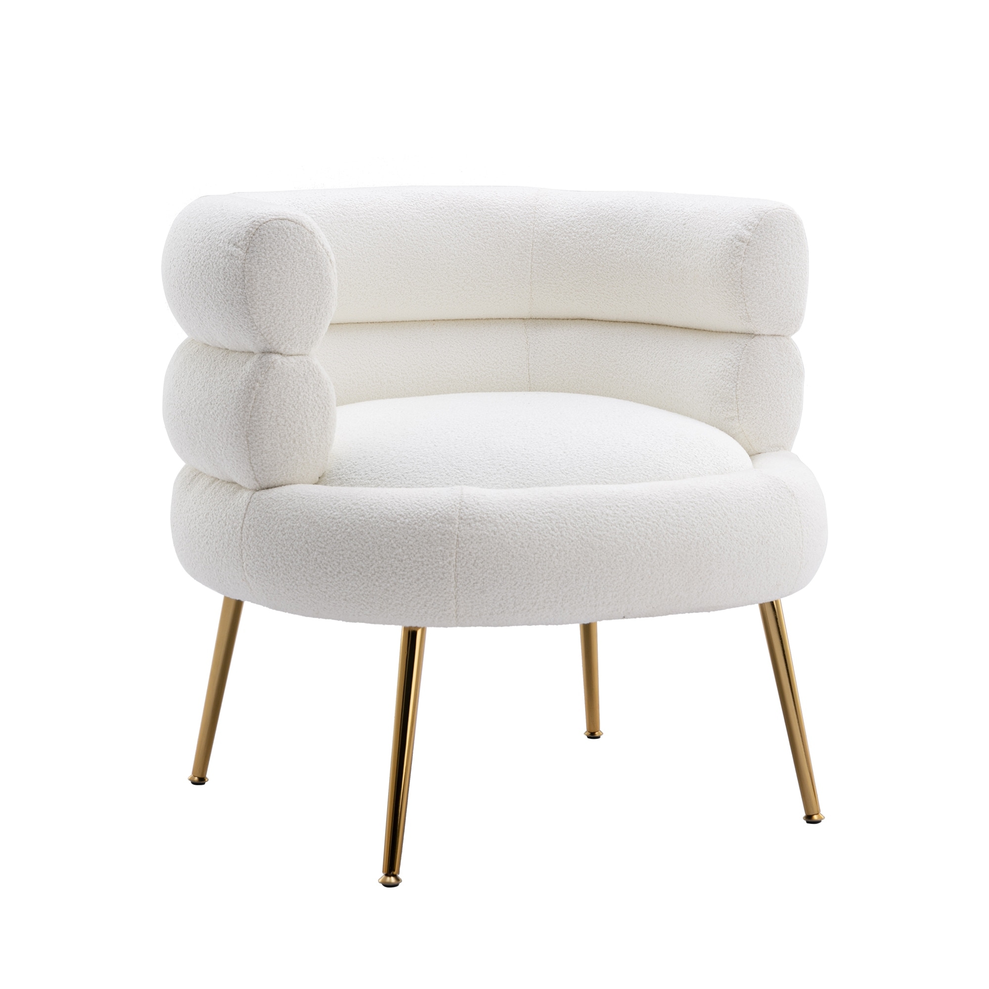 Velvet Scalloped Back Barrel Accent Chair with Metal Legs