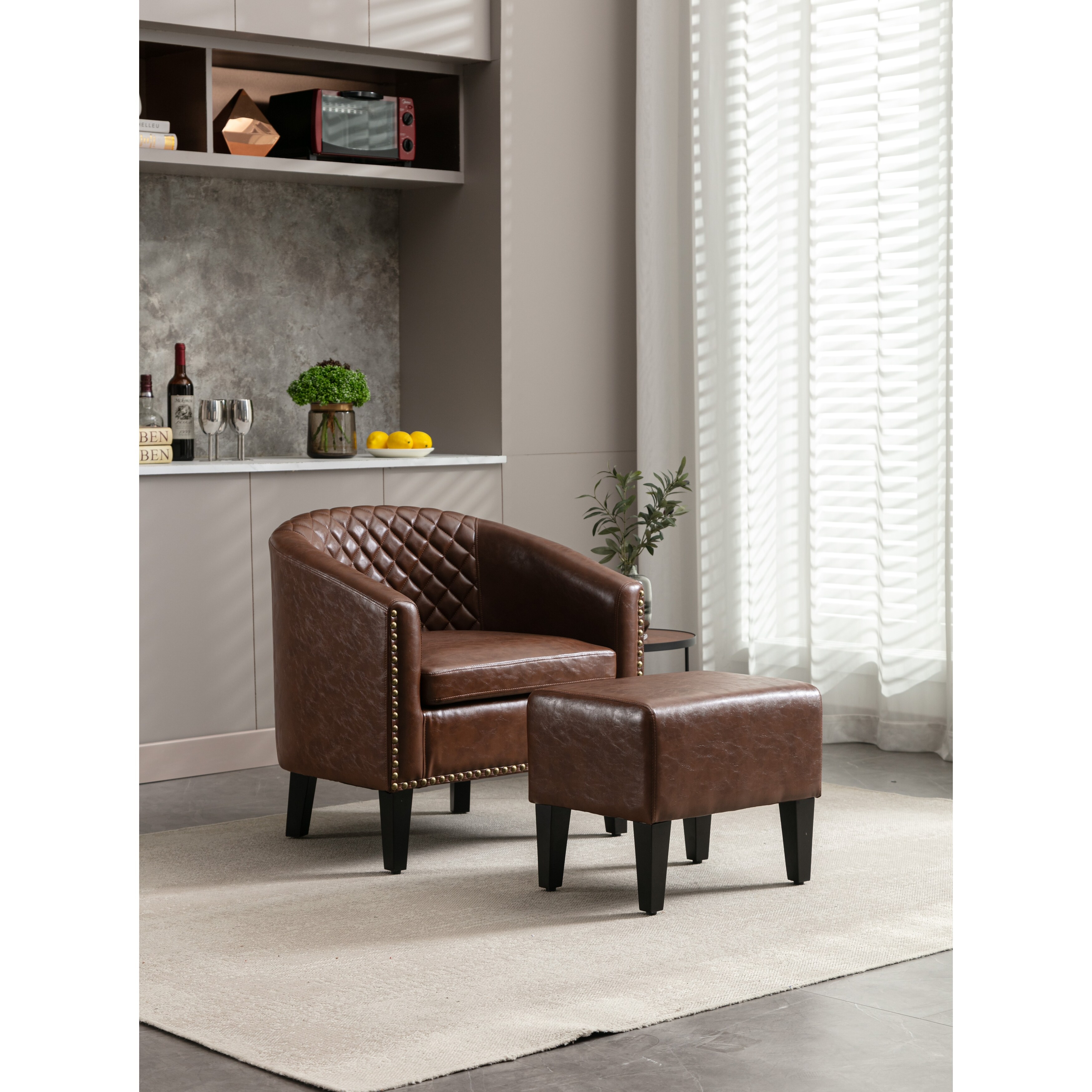 Velvet Tufted Accent Chair with Ottoman with Barrel Back, Wood Frame and Metal Legs