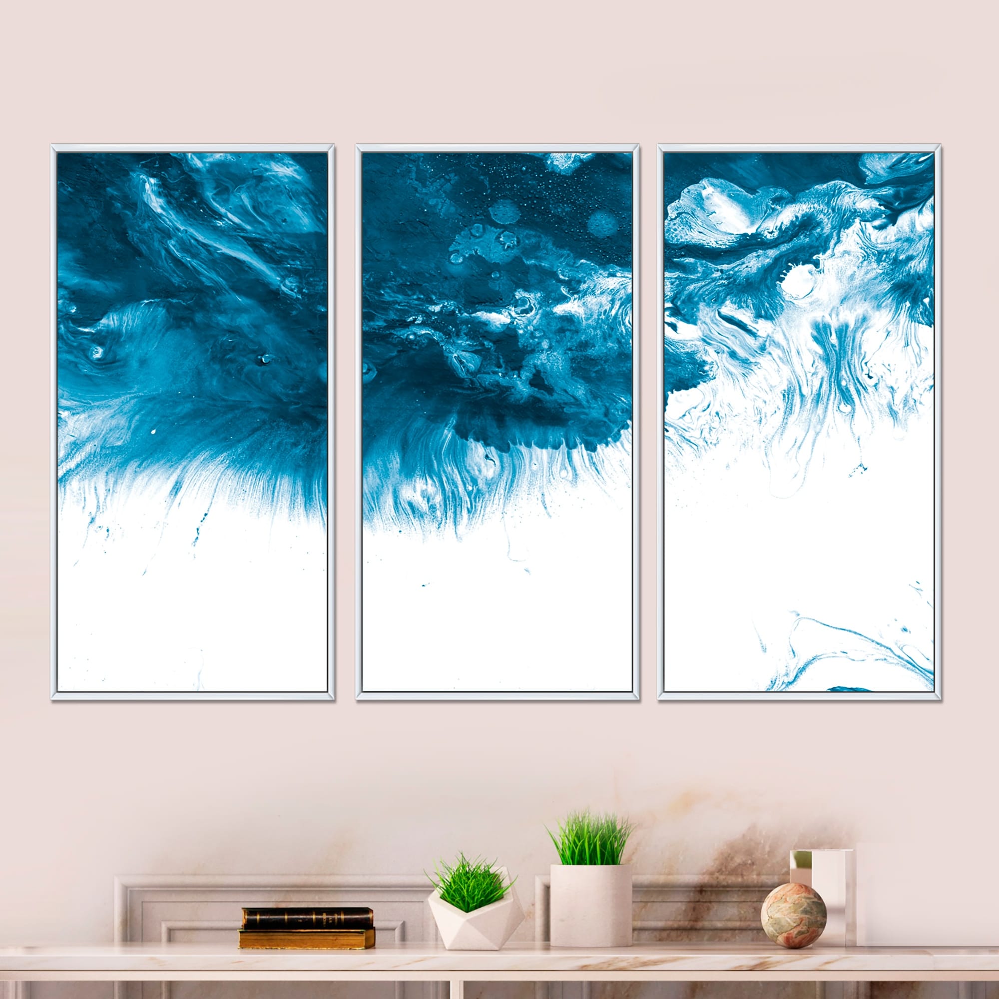 Designart "Blue and White Marble Acrylic" Mid-Century Modern Framed Art Set of 3 - 4 Colors of Frames