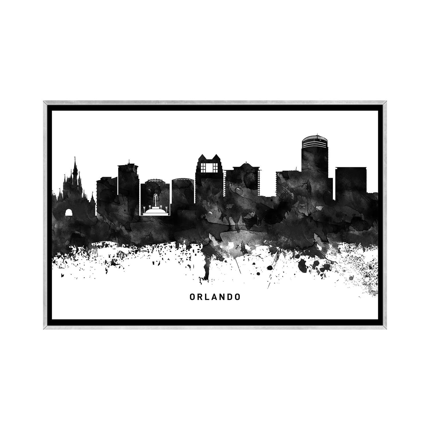 iCanvas "Orlando Skyline Black & White" by WallDecorAddict Framed