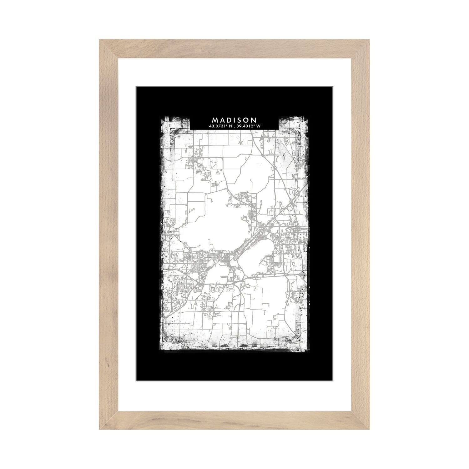 iCanvas "Madison City Map Black White Grey Style" by WallDecorAddict