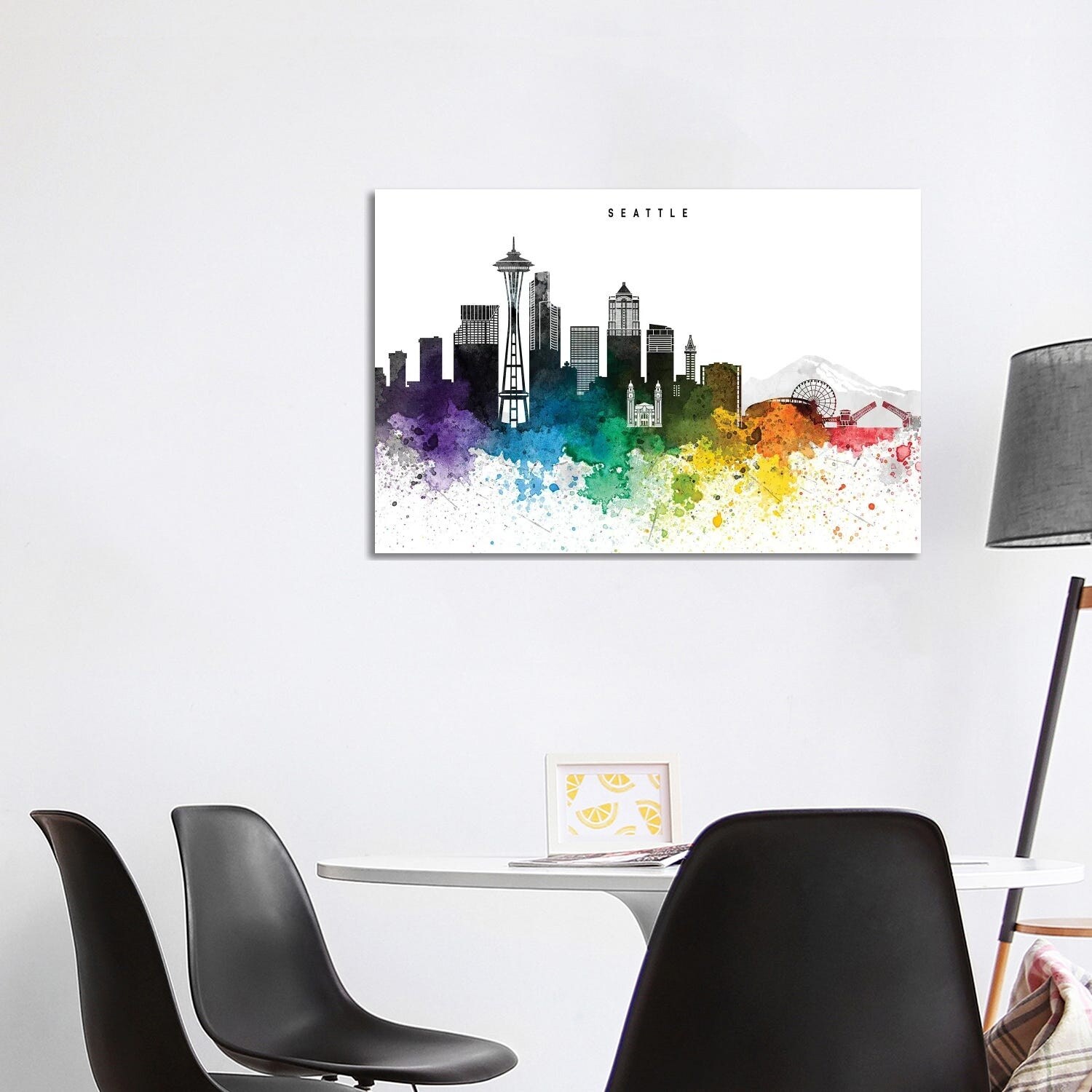 iCanvas "Seattle Skyline, Rainbow Style" by WallDecorAddict Canvas Print