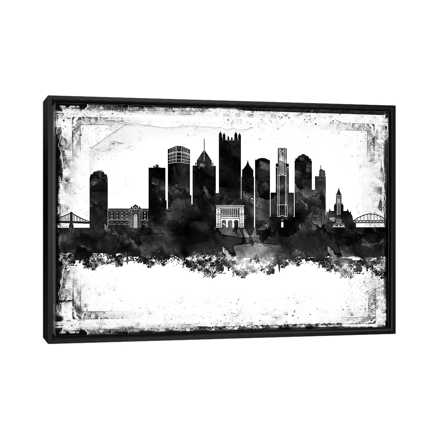 iCanvas "Pittsburgh Black And White Framed Skylines" by WallDecorAddict Framed Canvas Print