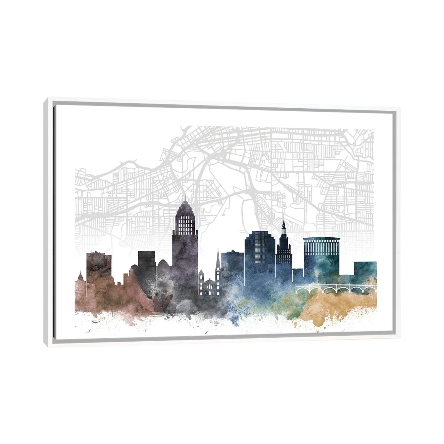 iCanvas "Cleveland City Map Colorful Watercolor Style" by WallDecorAddict