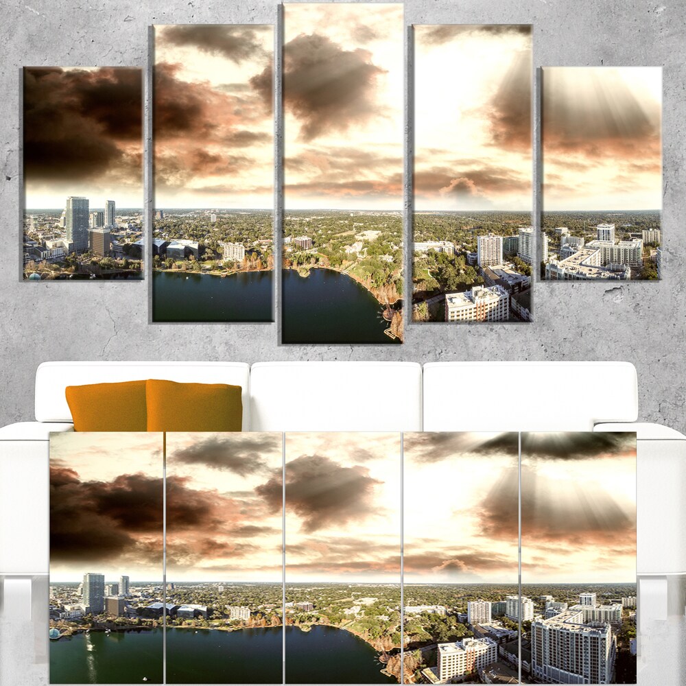 Downtown Orlando Sunset Aerial - Extra Large Seascape Art Canvas
