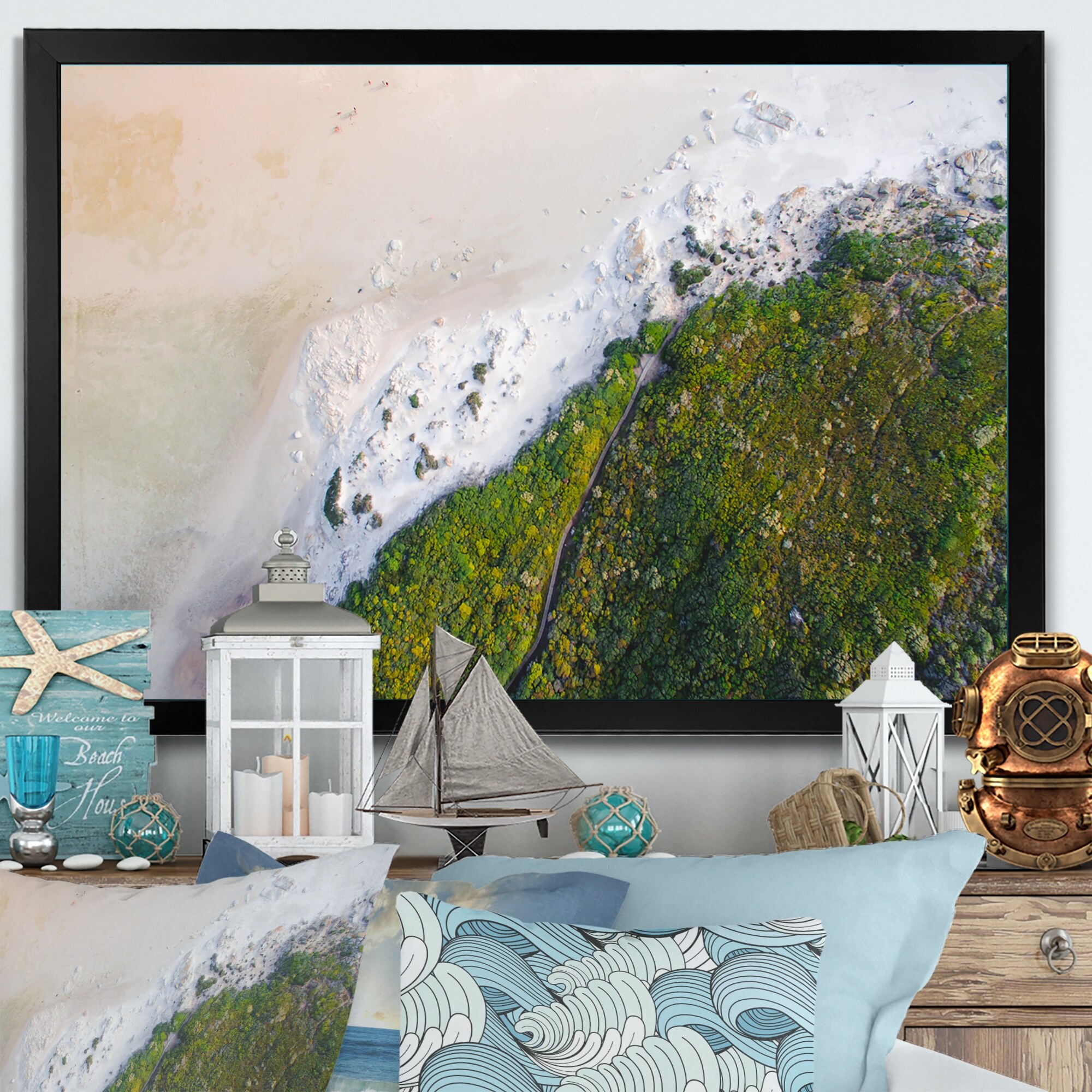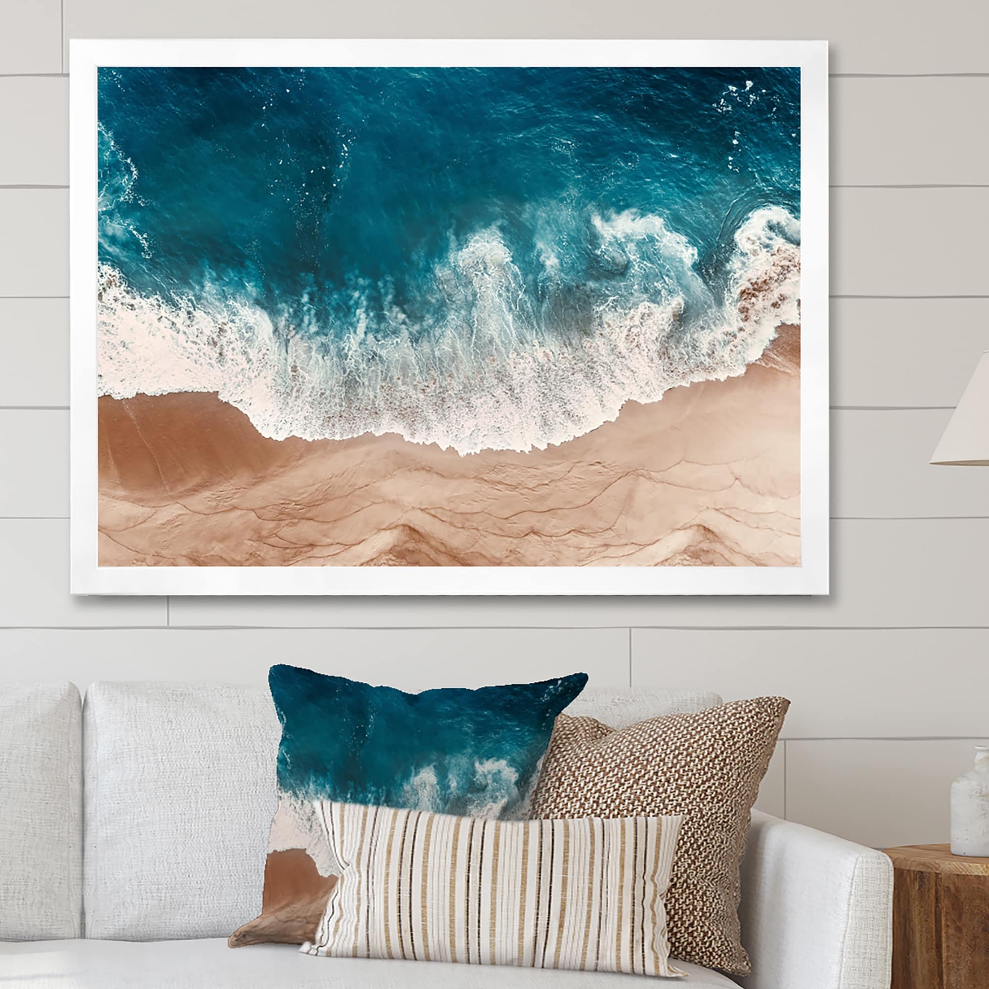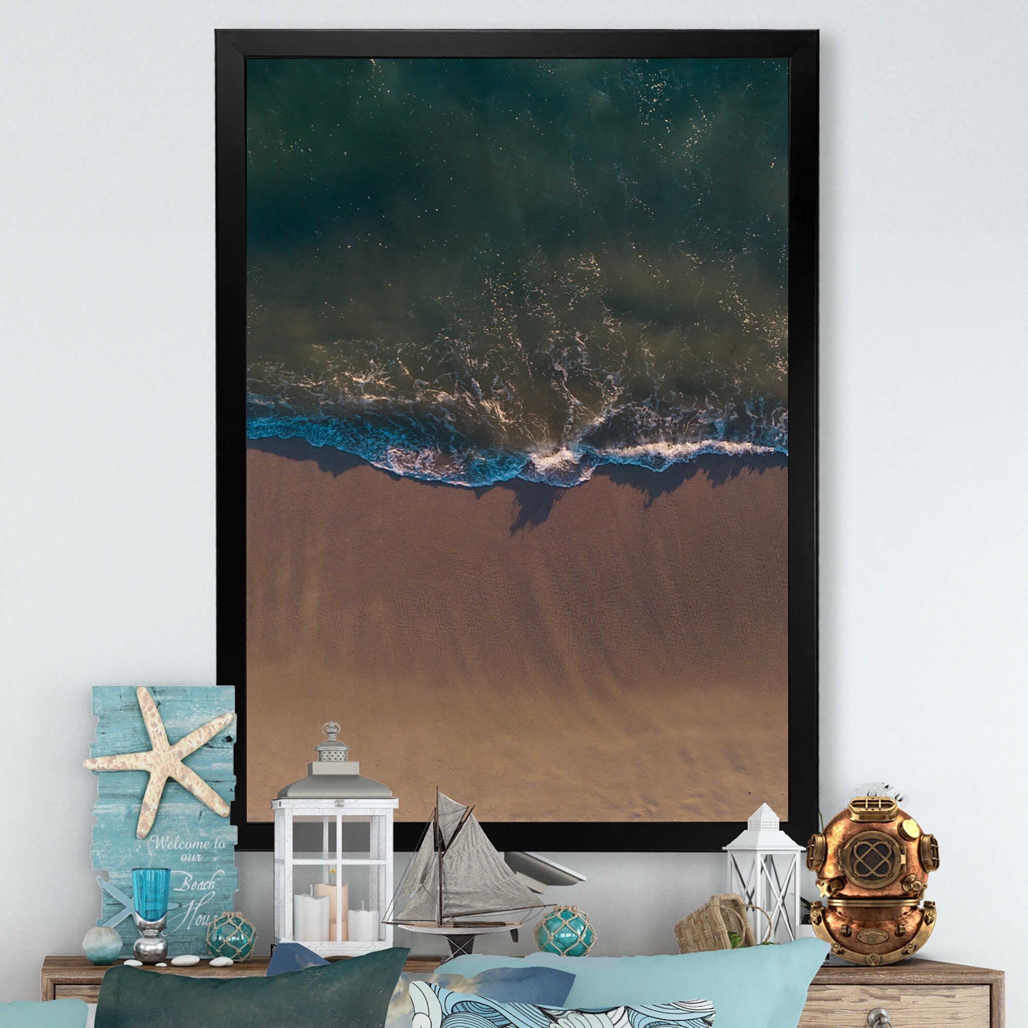 Designart "Ocean Beach Aerial View X" Nautical & Coastal Framed Art Print