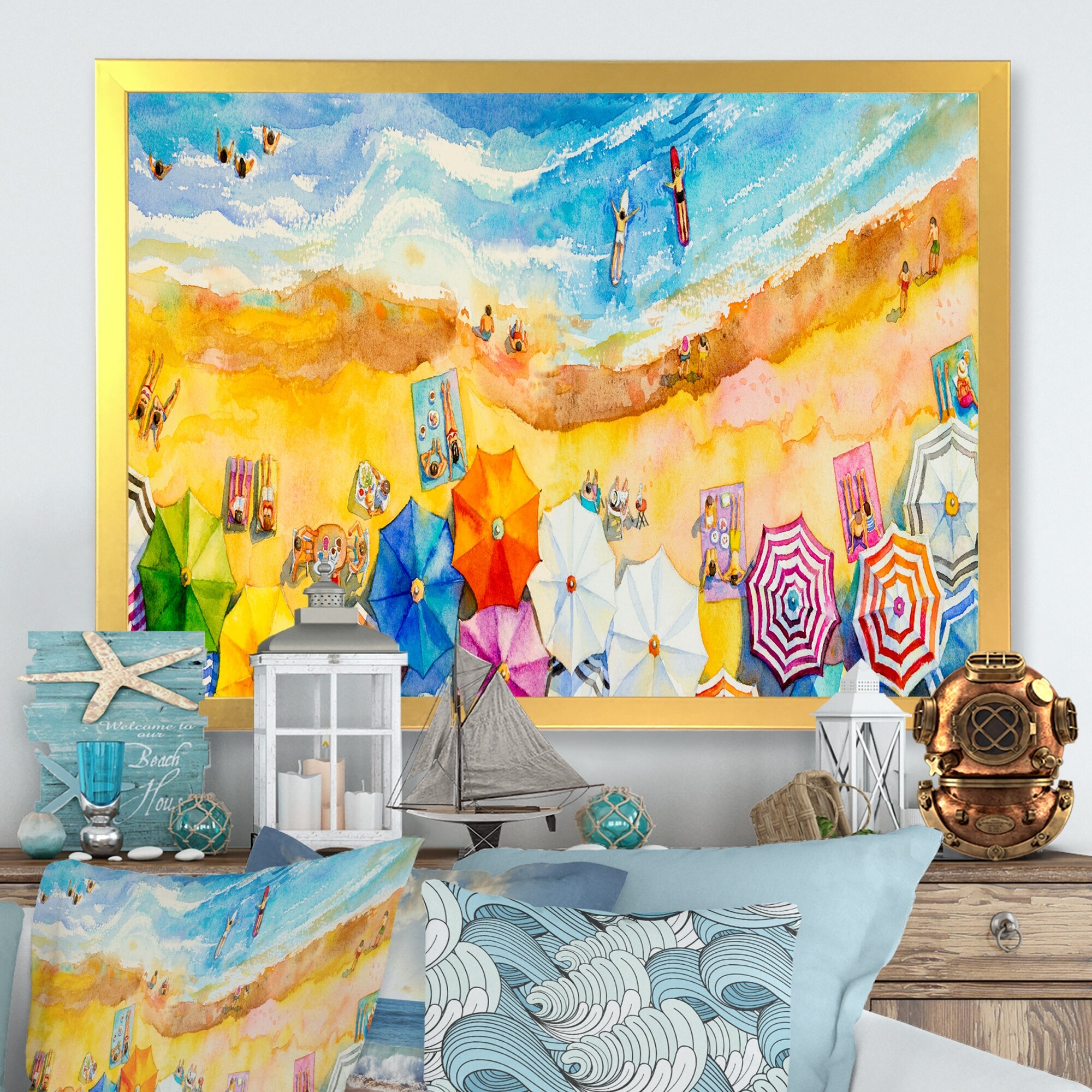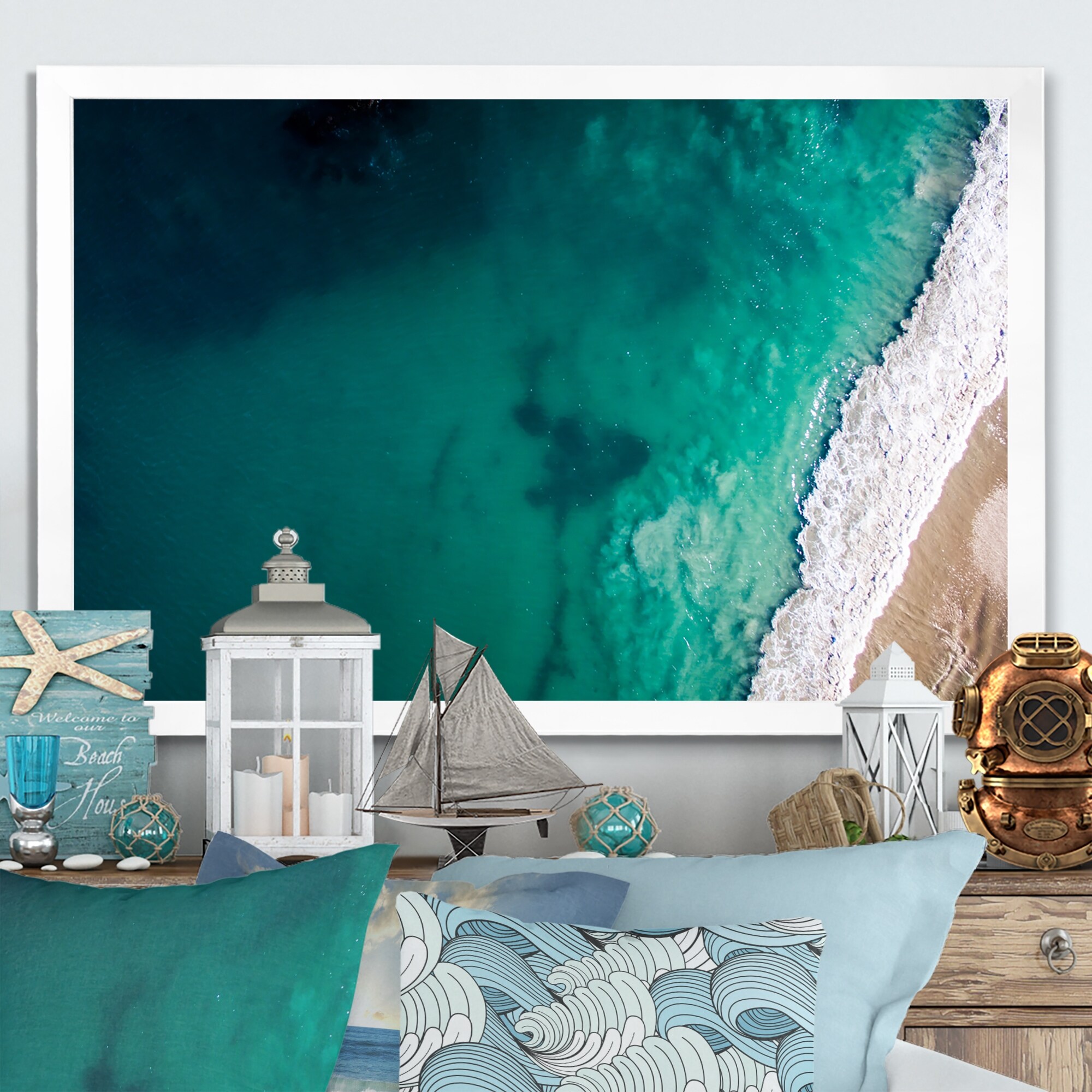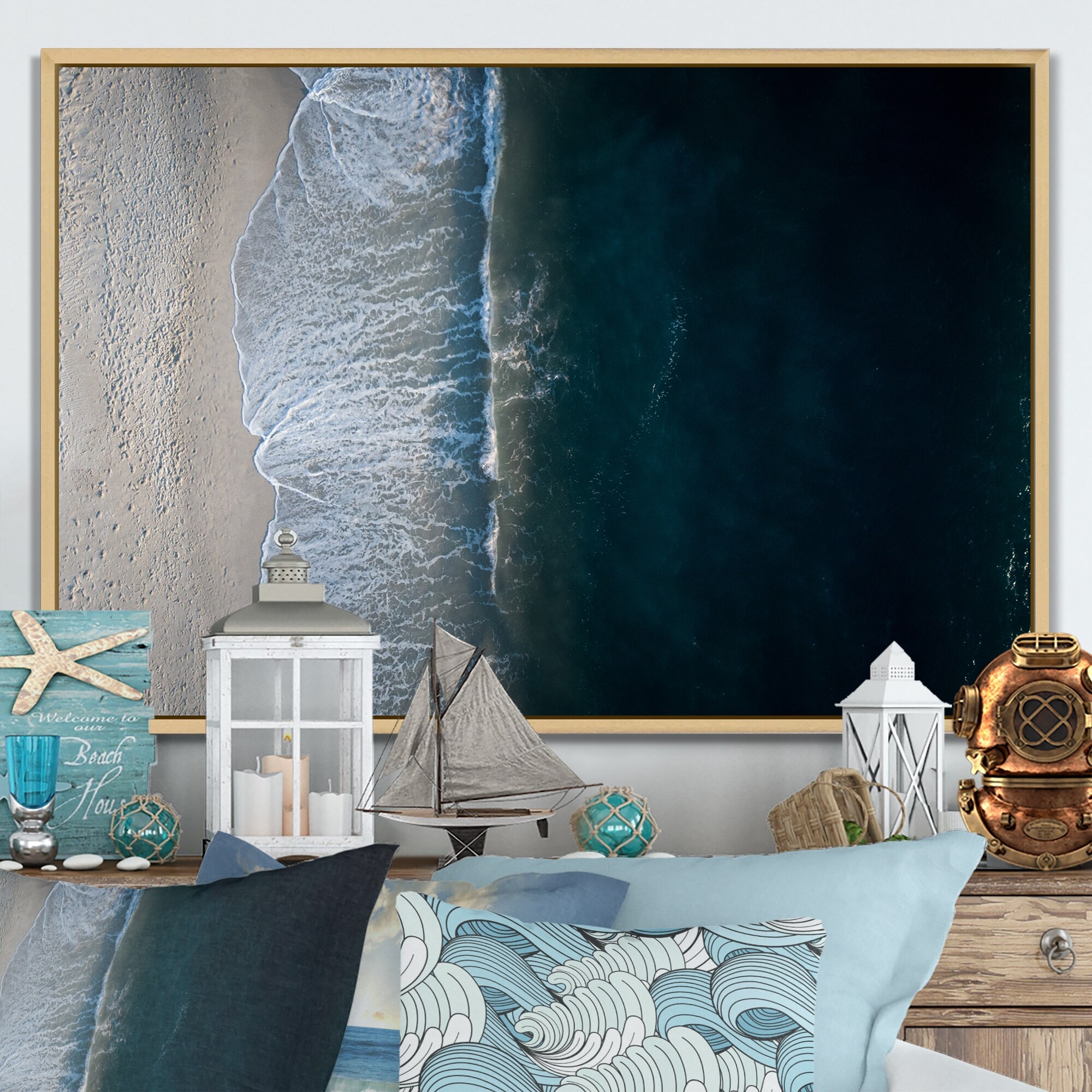 Designart "Ocean Beach Aerial View X" Nautical & Coastal Framed Art Print