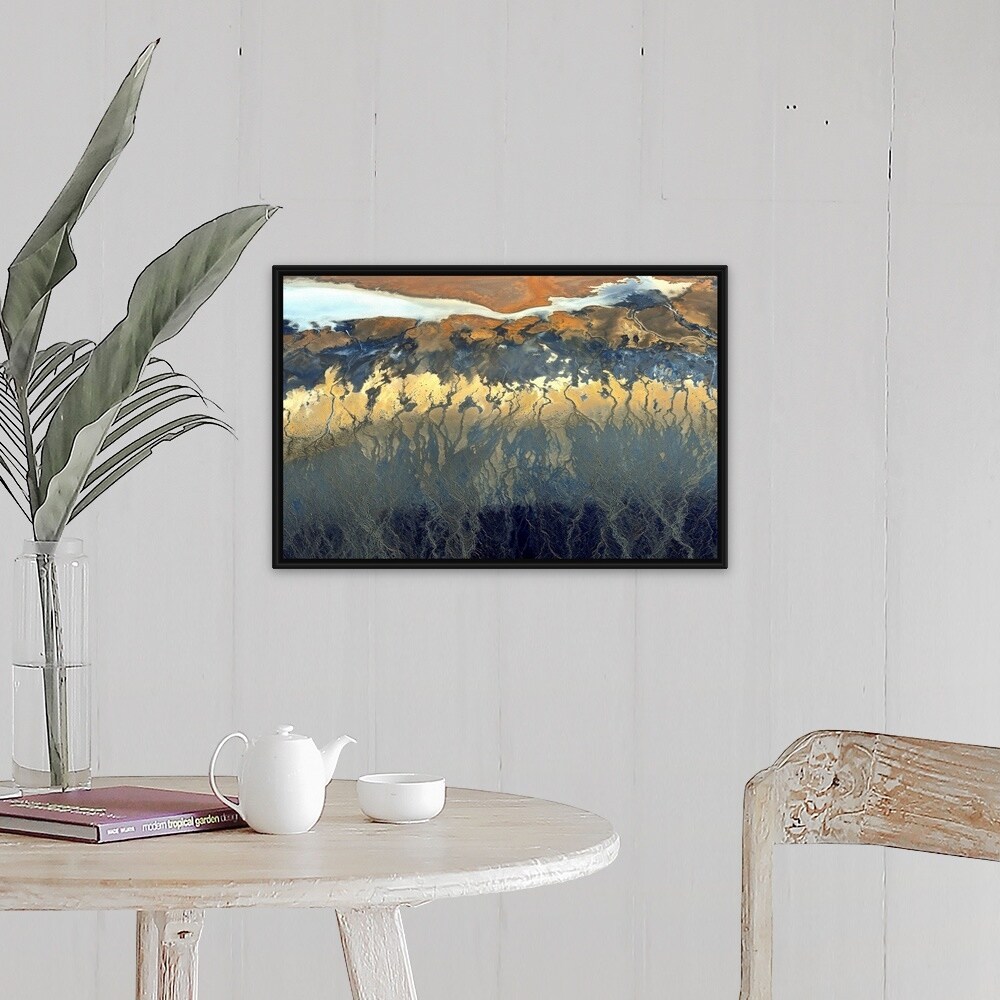 Designart "Aerial Drone View of a Meandering Riverbed" Traditional Framed Art Print