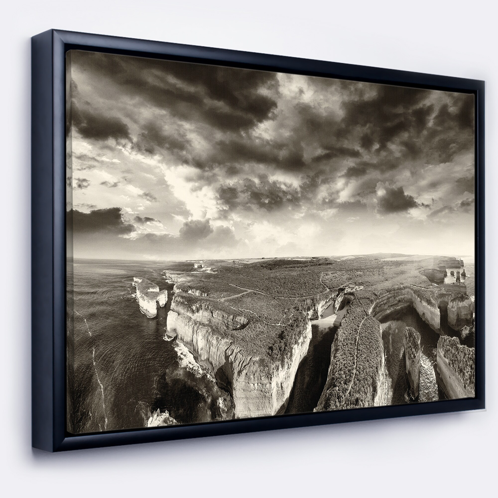 Designart "Aerial View of Great Ocean Road" Large Seascape Art Framed Canvas Print