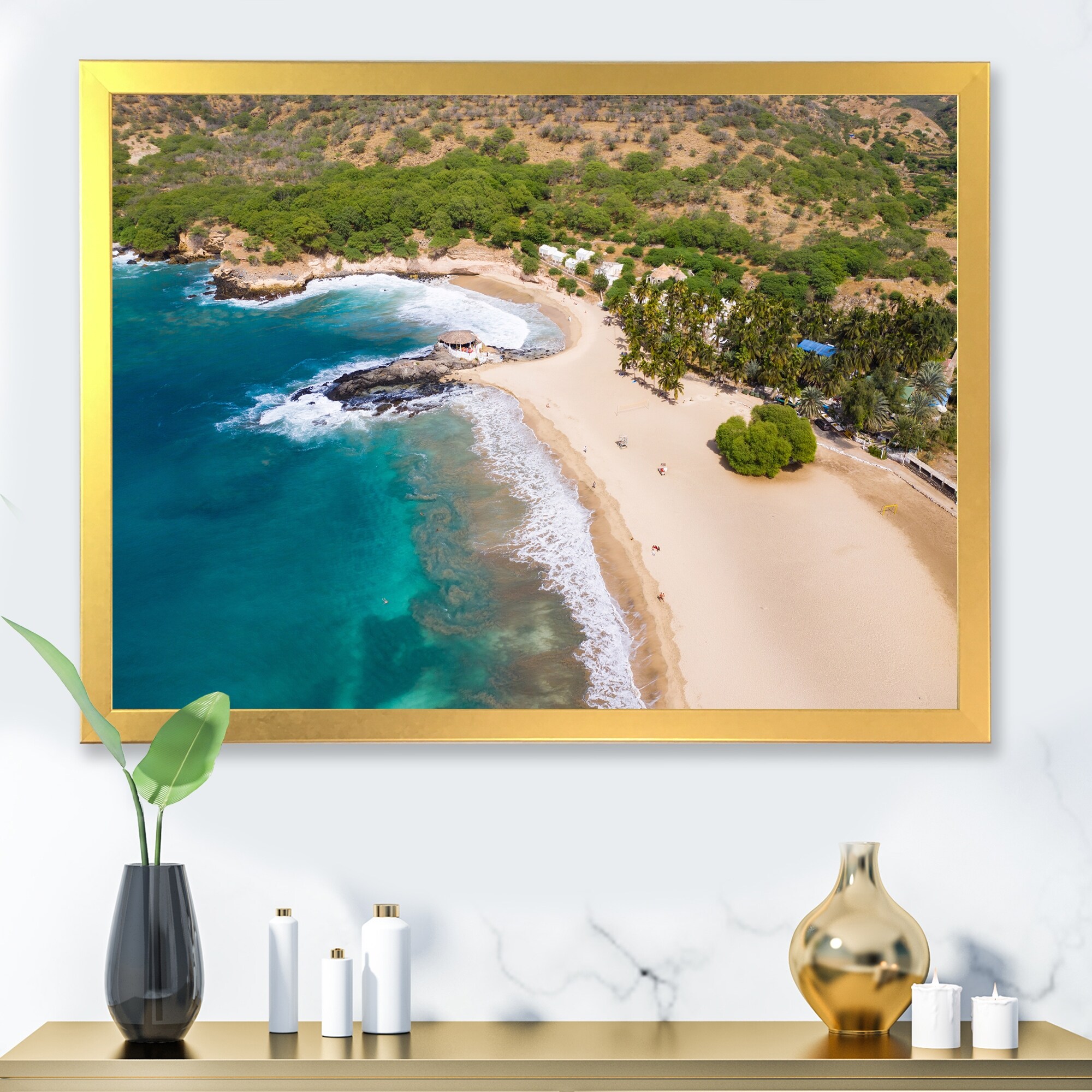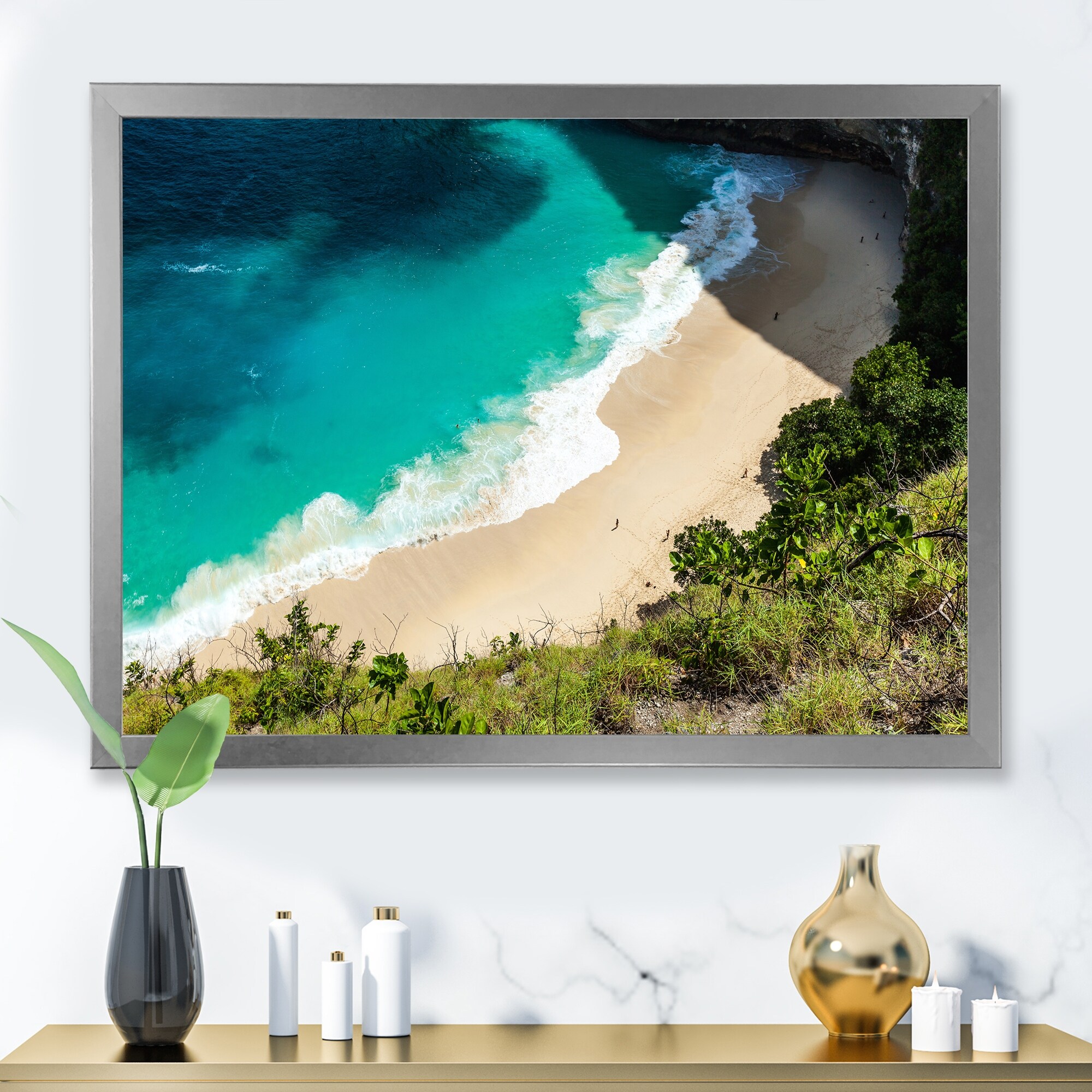 Designart "Aerial View of Tropical Beach V" Nautical & Coastal Framed Art Print