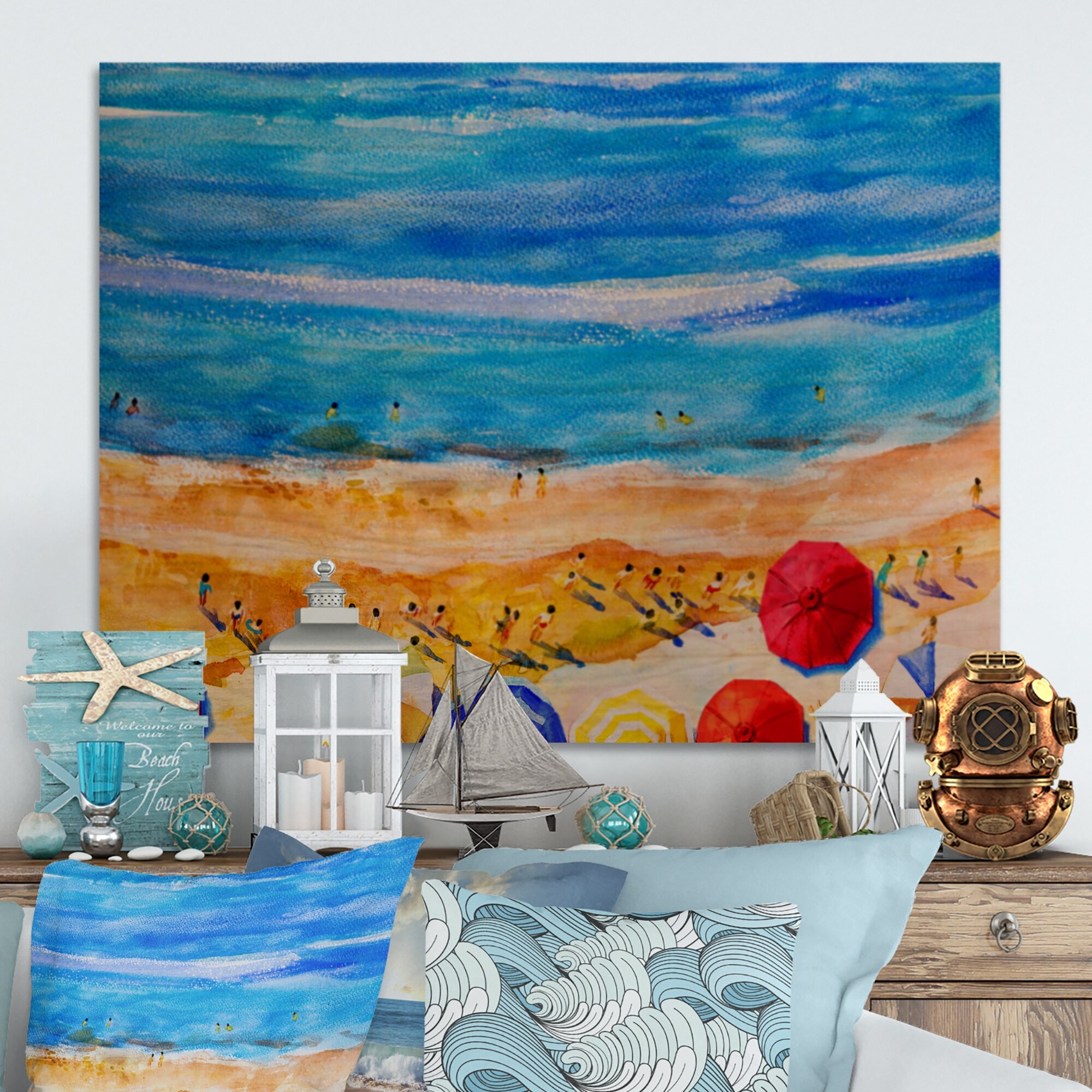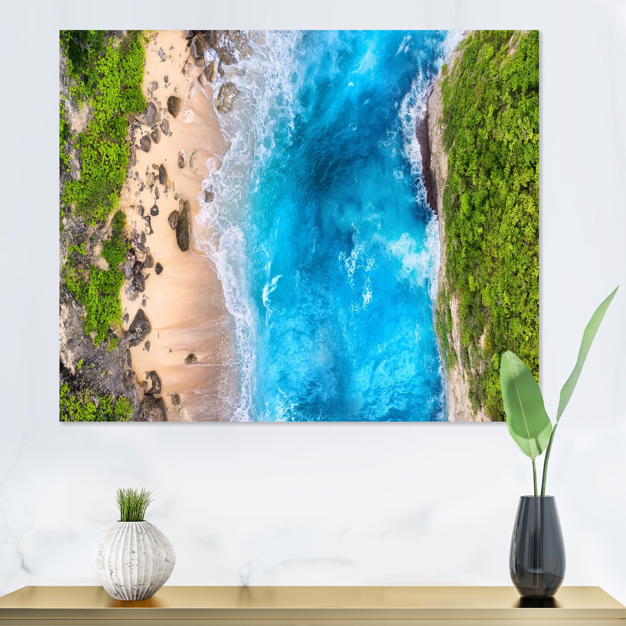 Designart "Aerial View of Tropical Beach II" Nautical & Coastal Canvas Wall Art Print