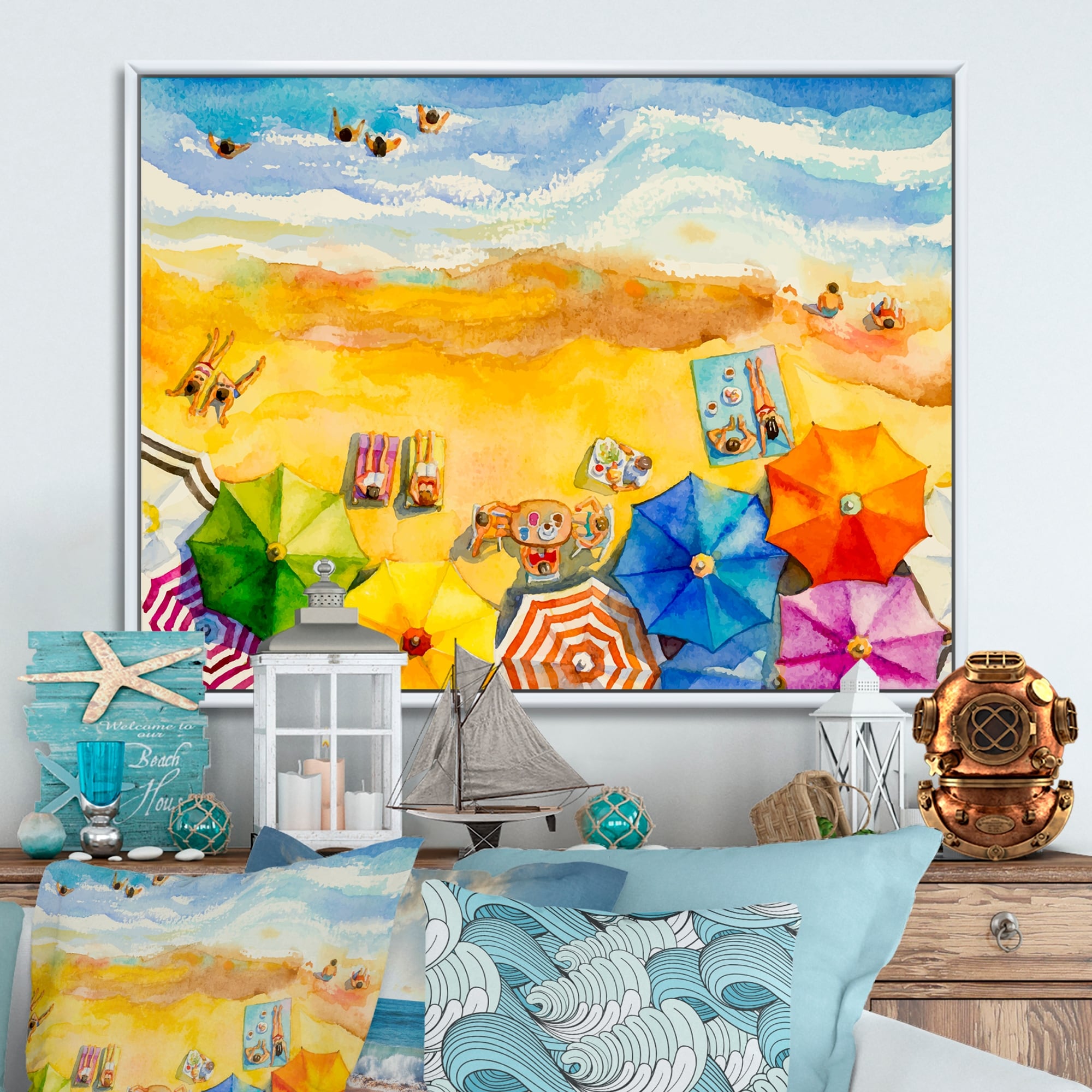 Designart "Aerial Pastel Beach Miami VII" Nautical & Coastal Framed Canvas Wall Decor