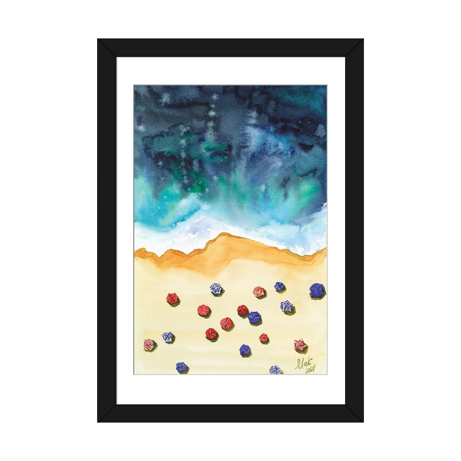 Designart "Ocean Beach Aerial View III" Nautical & Coastal Framed Wall Art
