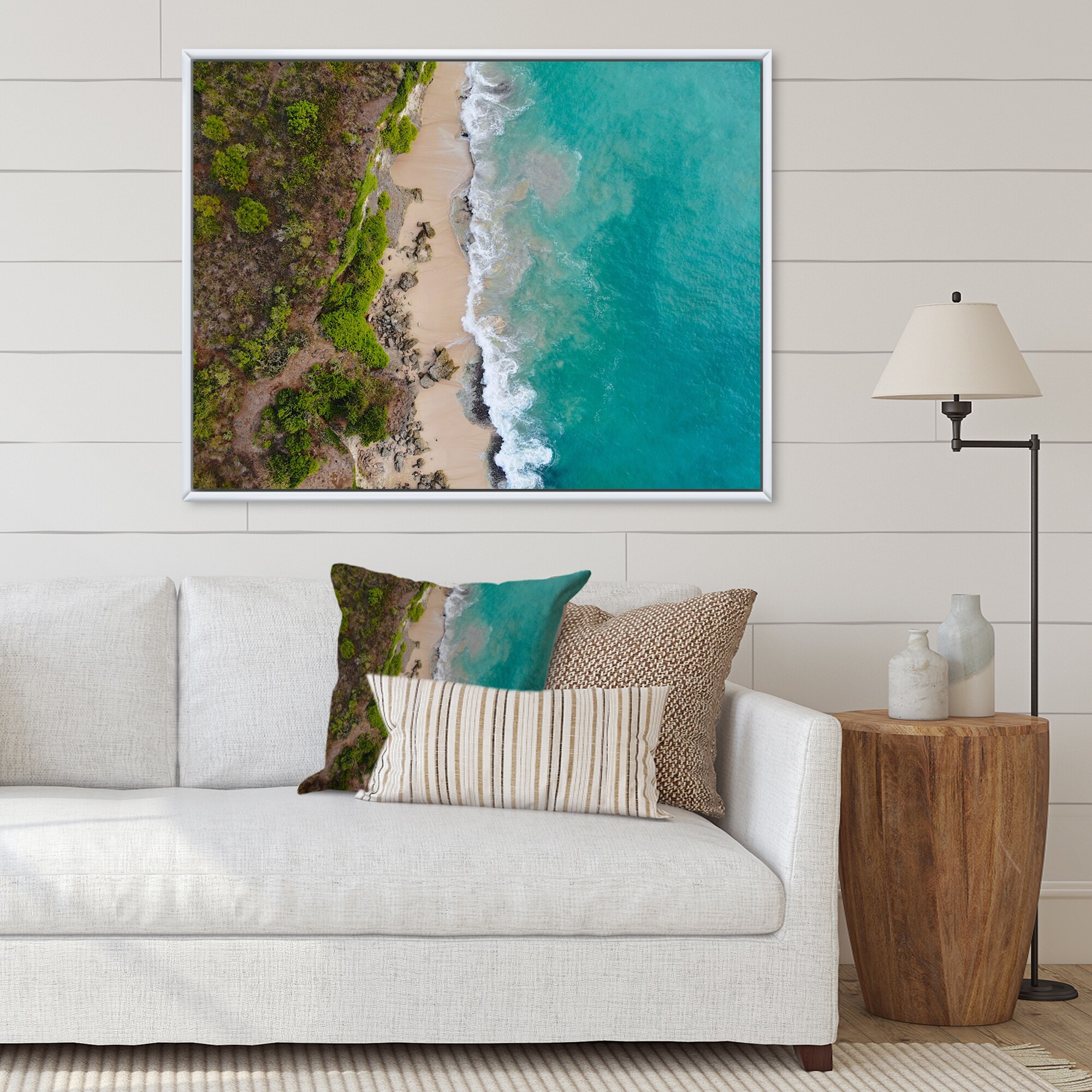 Designart "Ocean Beach Aerial View II" Nautical & Coastal Framed Canvas Art Print