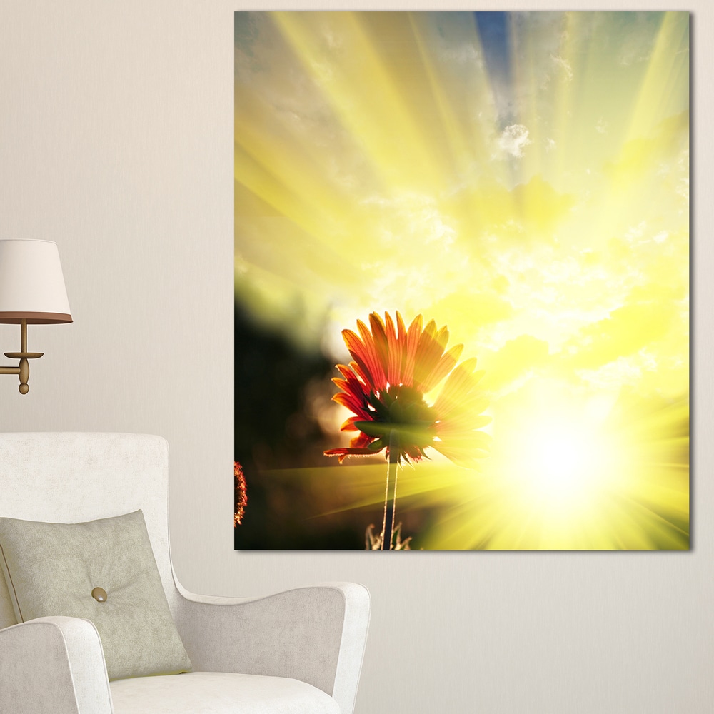 Designart "Flower Against Bright Yellow Sunset" Modern Flower Canvas Art Print