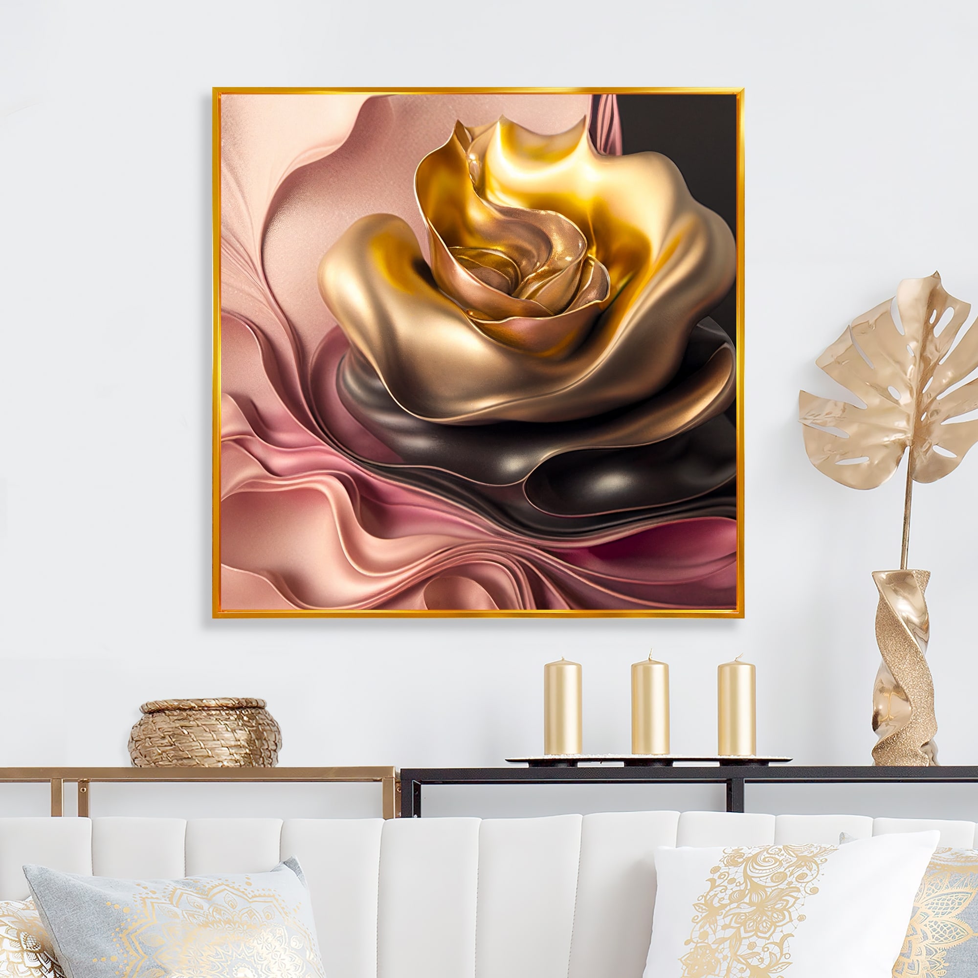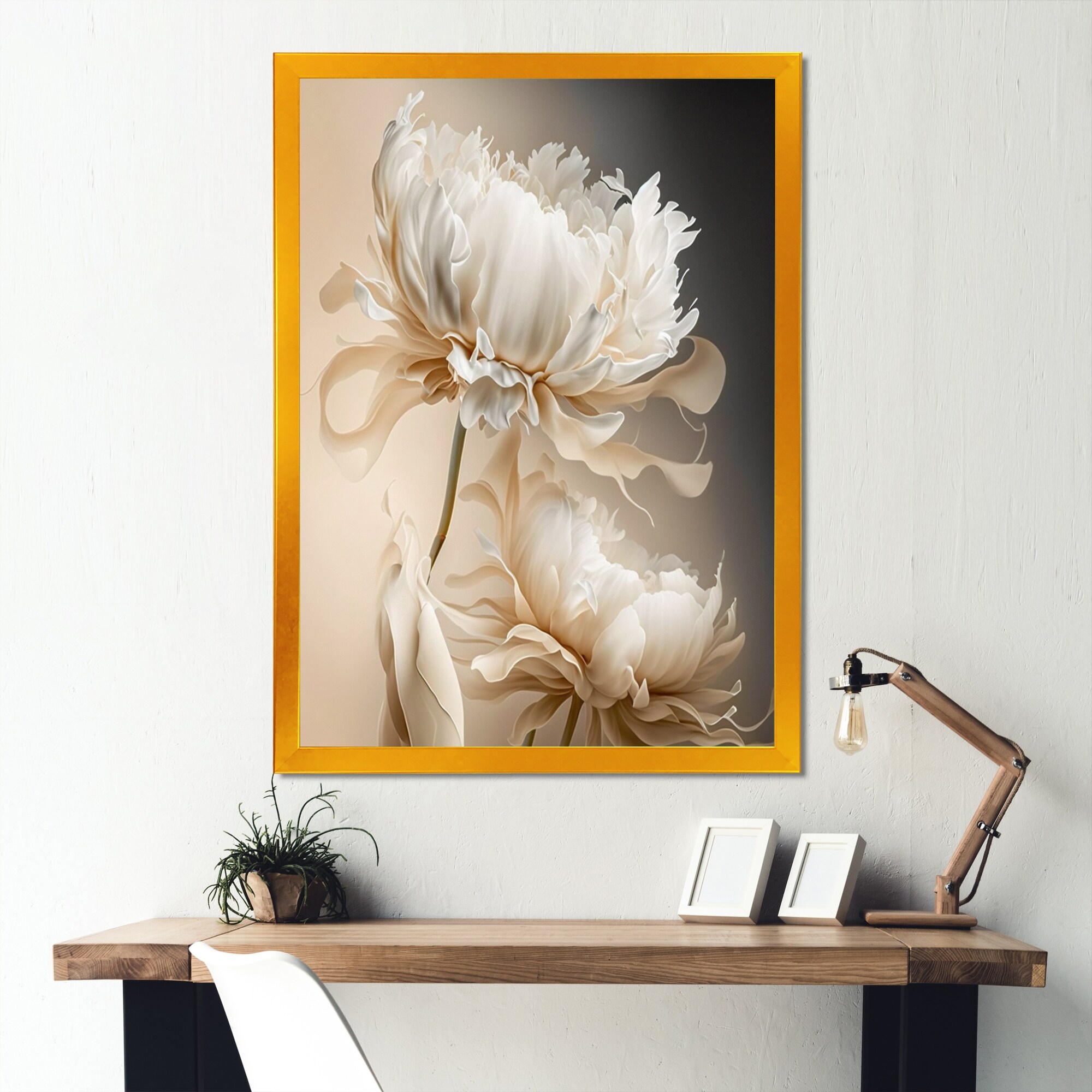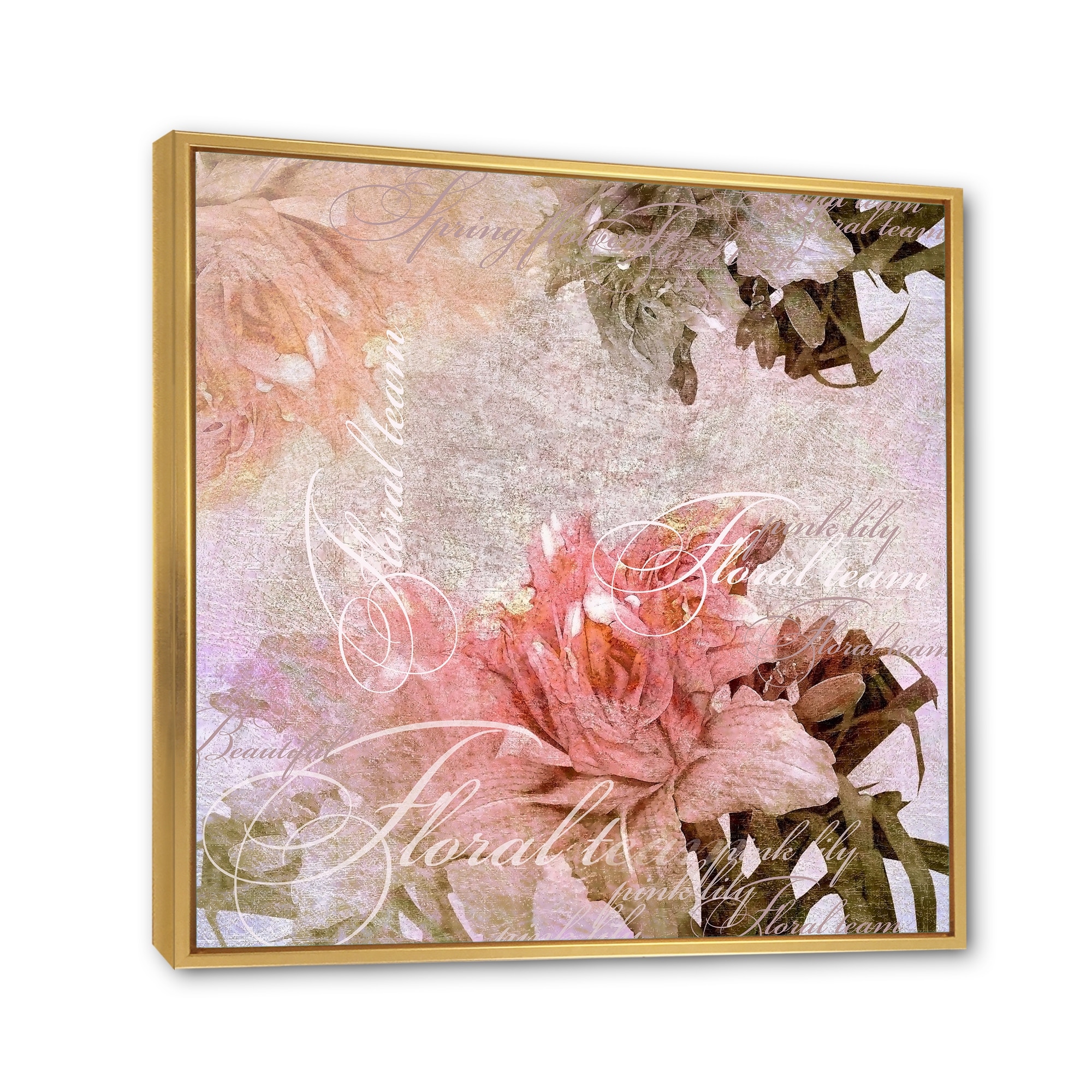Designart "Stylish Glam Flowers in Gold And Taupe I" Floral Framed Canvas Wall Art Print