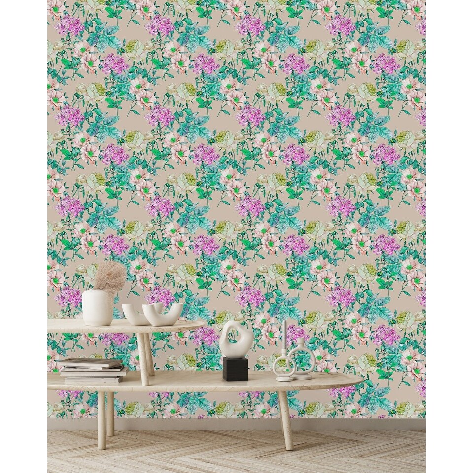 Flowers and Green Leaves Wallpaper Peel and Stick and Prepasted