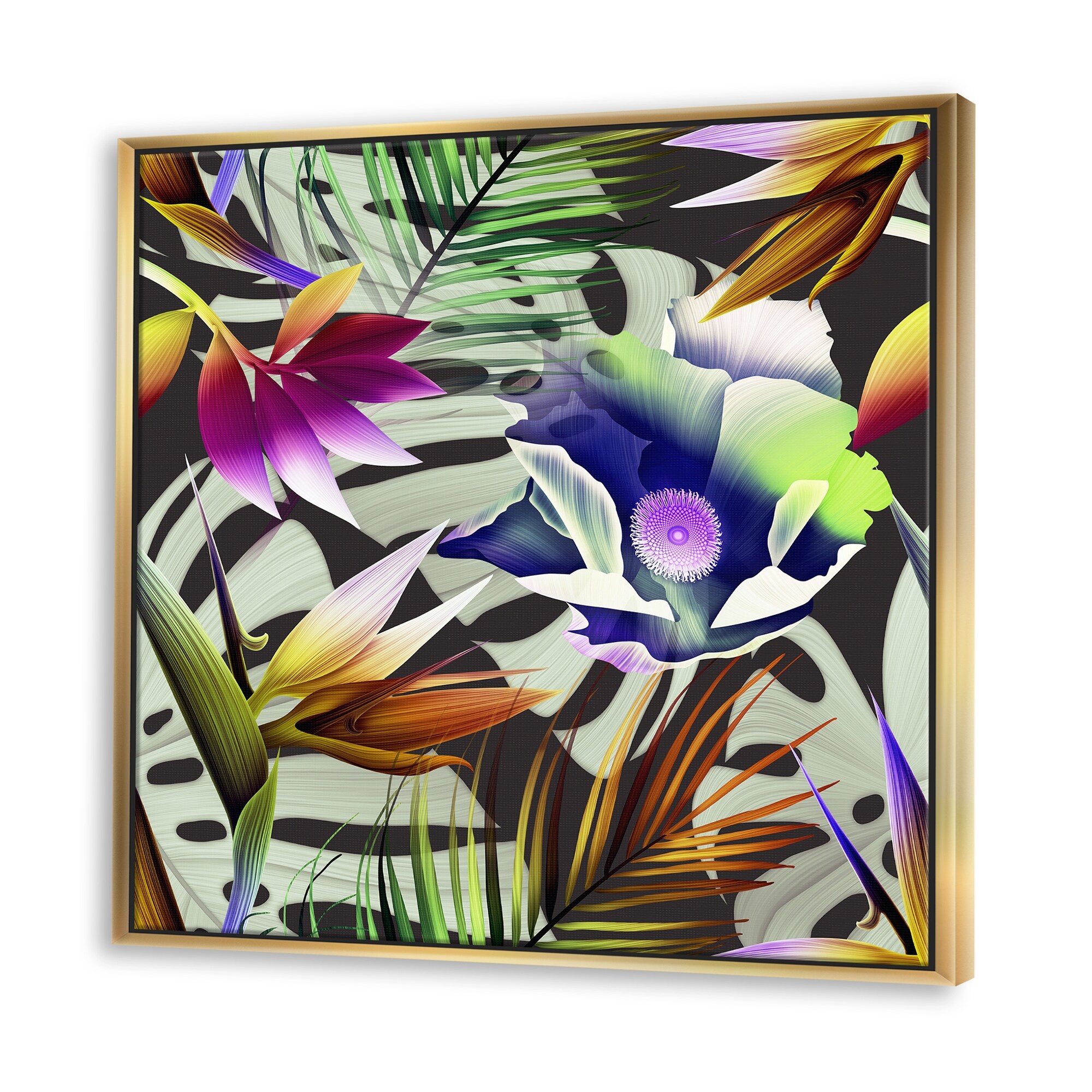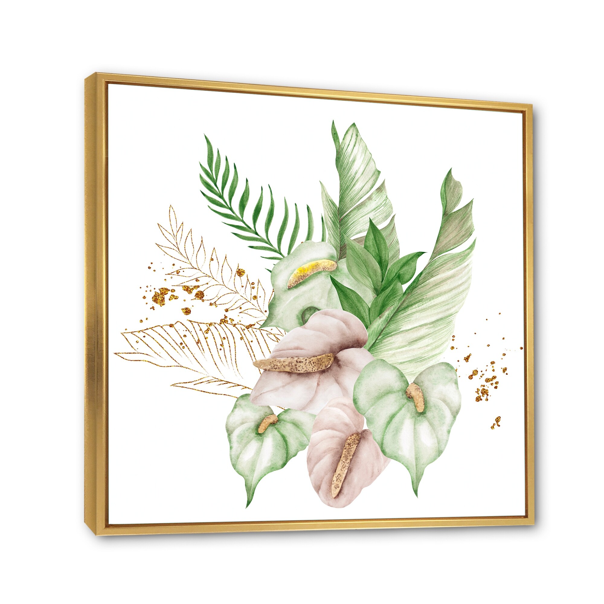 Designart "Tropical Bouquet With Flowers And Golden Leaves II" Tropical Framed Canvas Wall Art Print