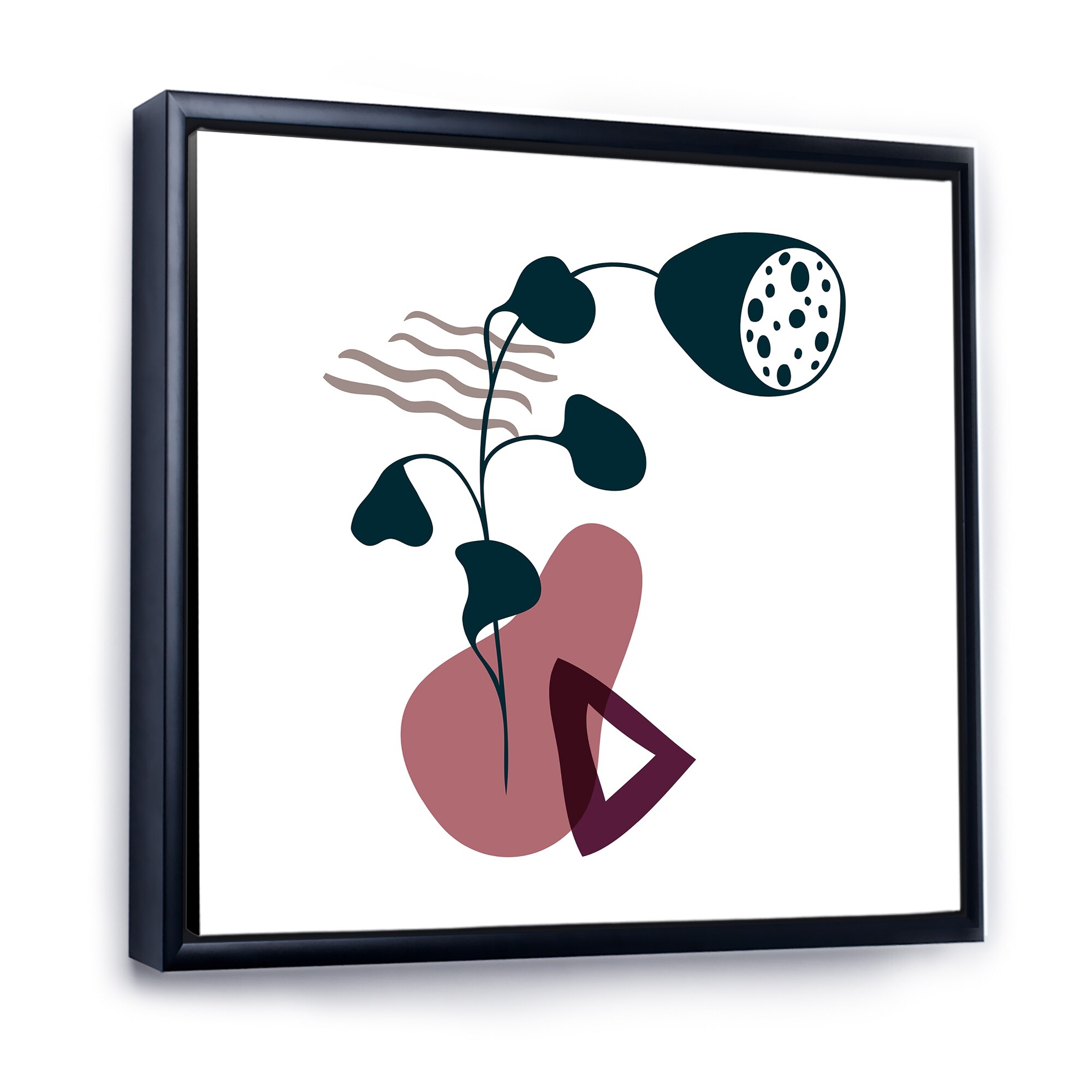 Designart "Elementary Shapes With Abstract Flowers Plants V" Modern Framed Canvas Wall Art Print