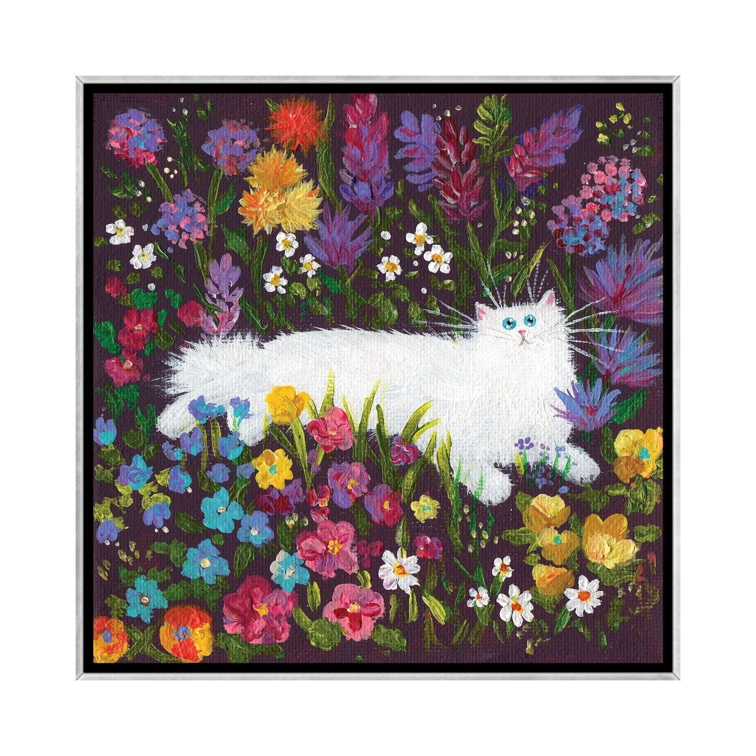 iCanvas "White Cat in Flowers" by Kim Haskins Framed
