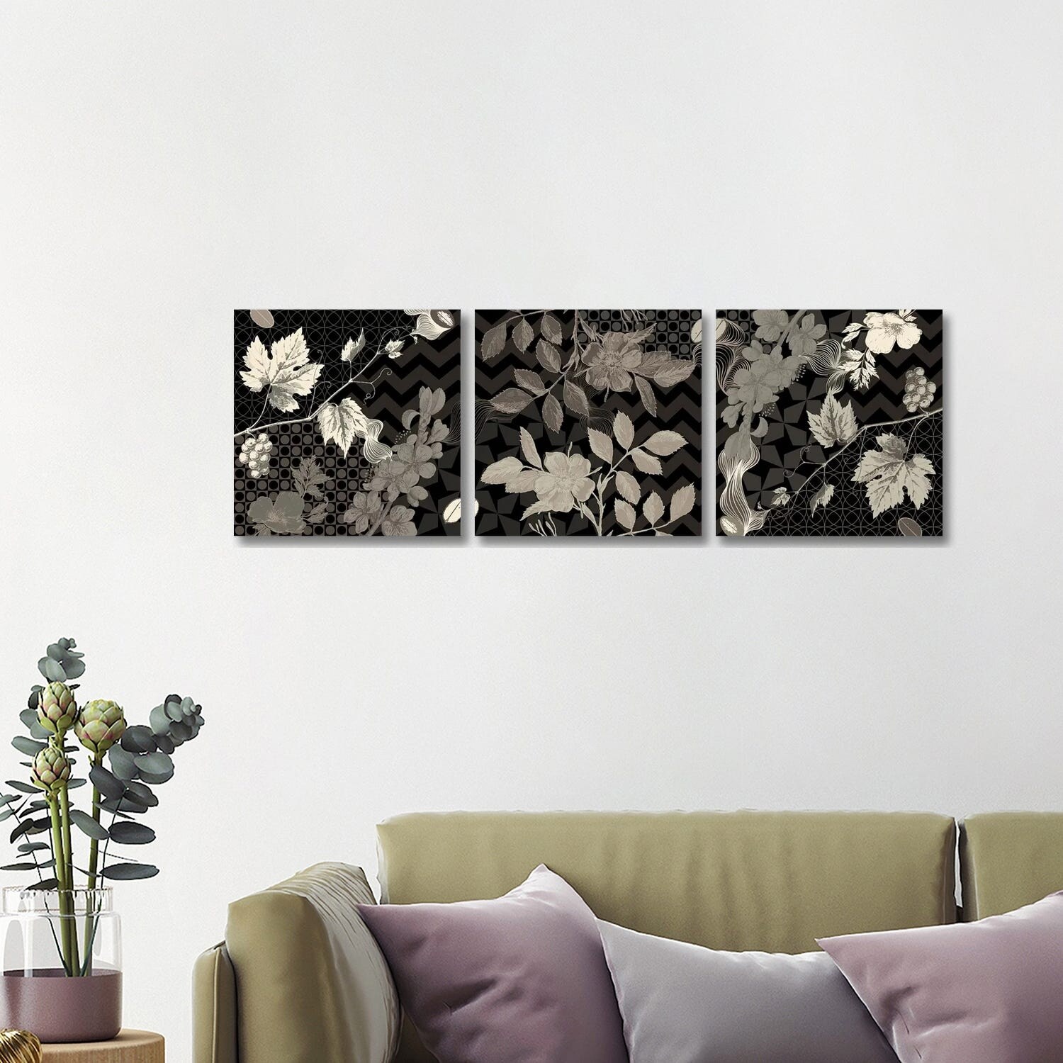 iCanvas "Flowers & Ornaments (Black&White)" by 5by5collective 3-Piece Canvas Wall Art Set