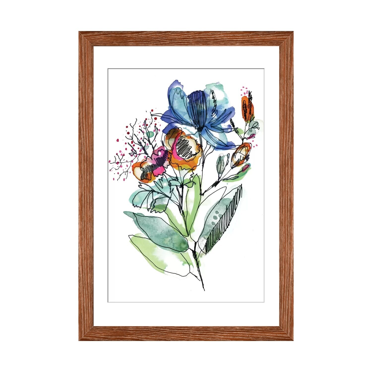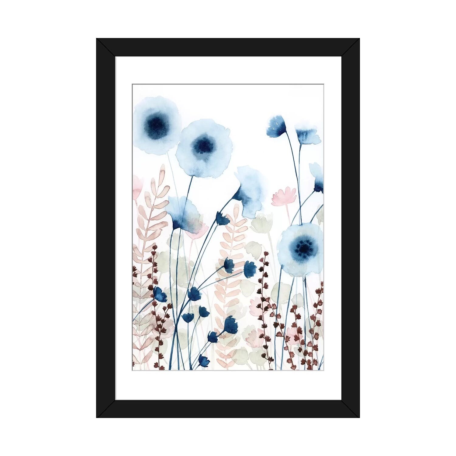 iCanvas "Watercolor Flowers Blue Lines II" by Seven Trees Design Framed