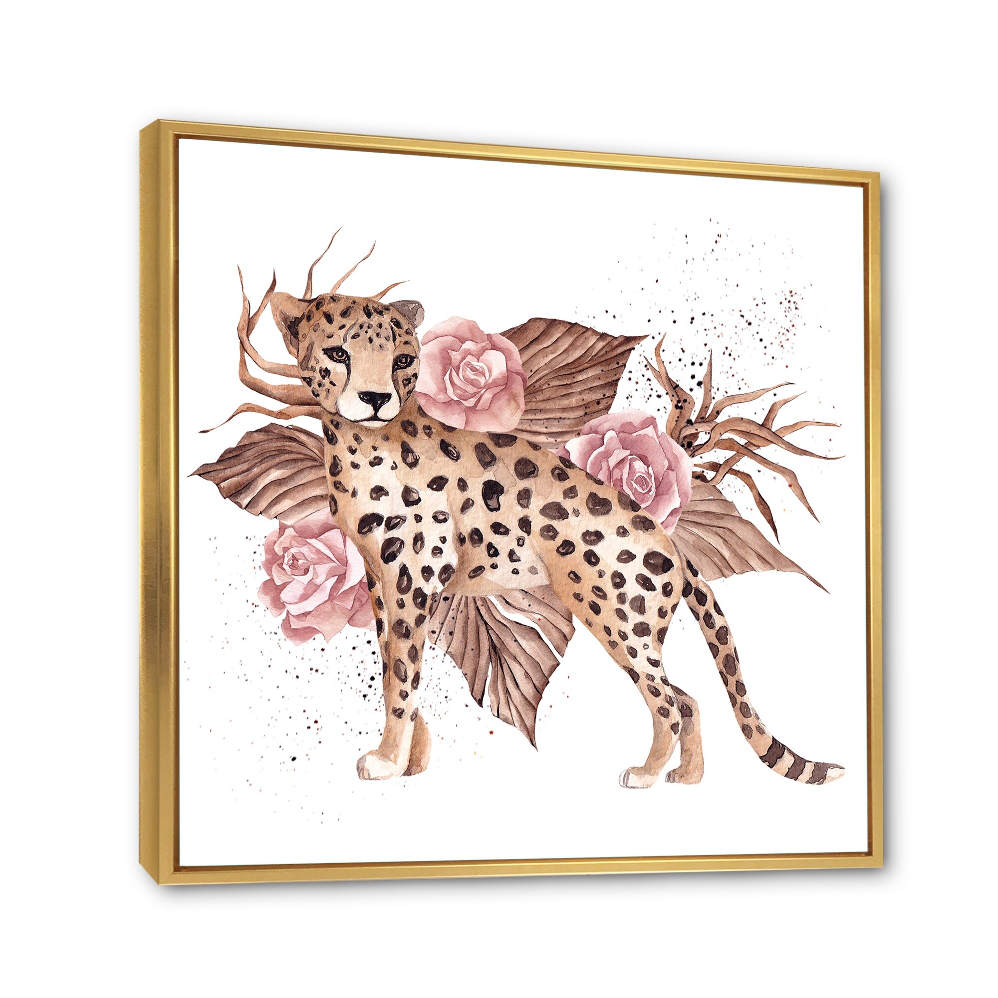 Designart "Leopard WIth Pink Tropical Flowers" Traditional Framed Canvas Wall Art Print