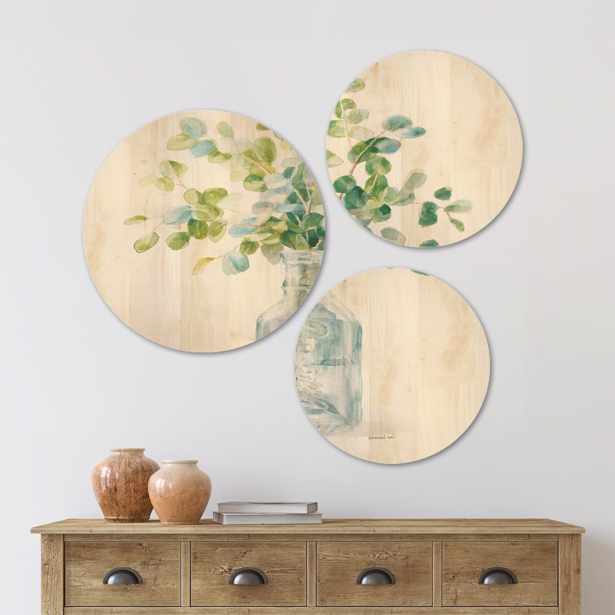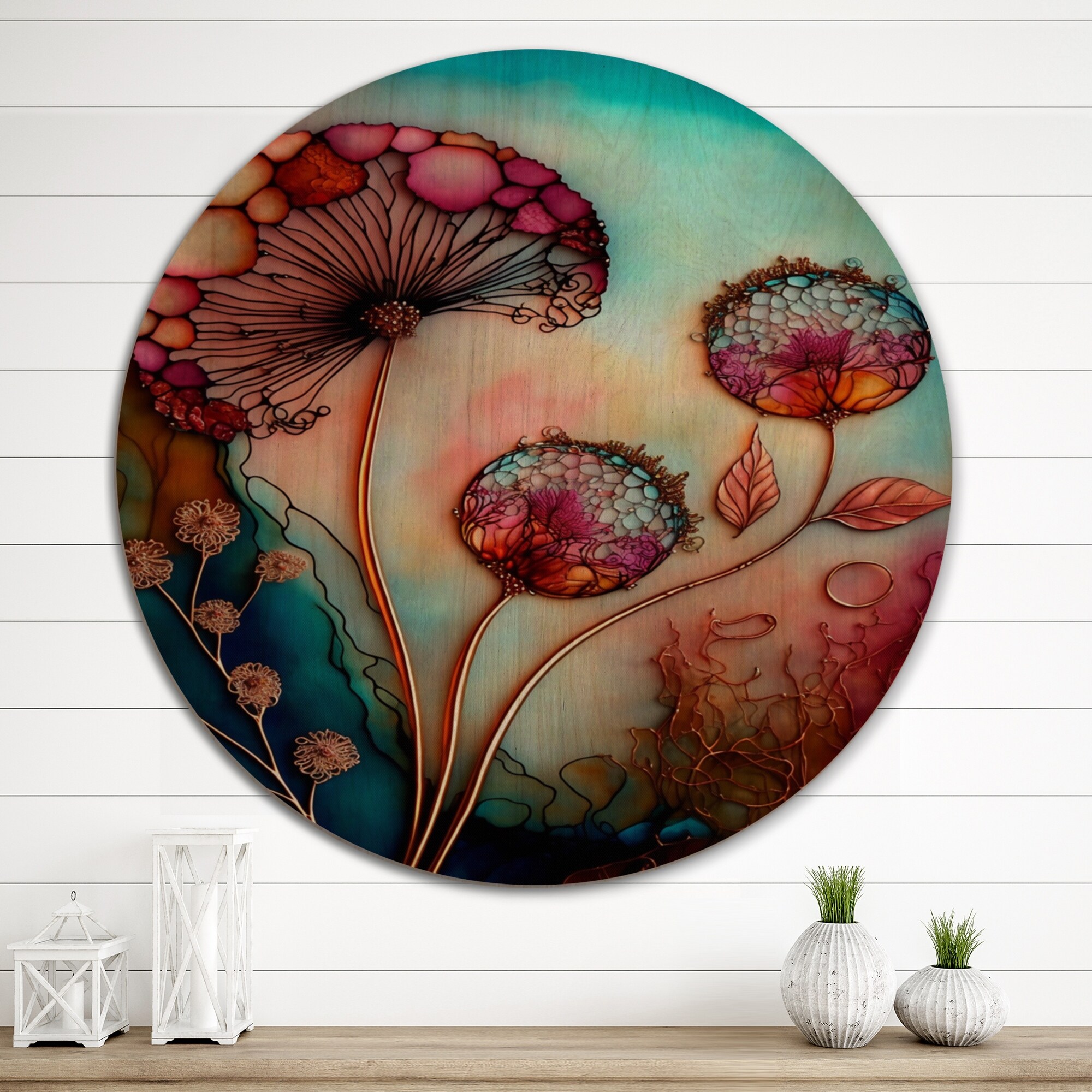 Designart 'Beach Flowers IV' Cottage Wood Wall Art Set of 3 Circles
