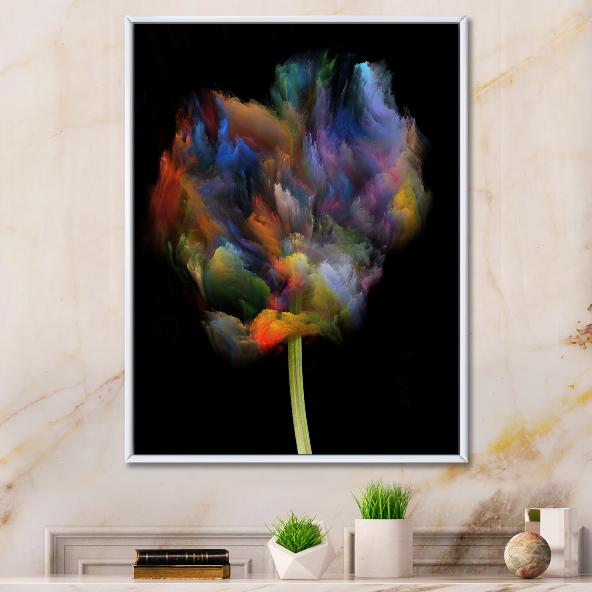 Designart "Blooming Multicolor Fractal Flower V" Modern Floral Framed Canvas artwork