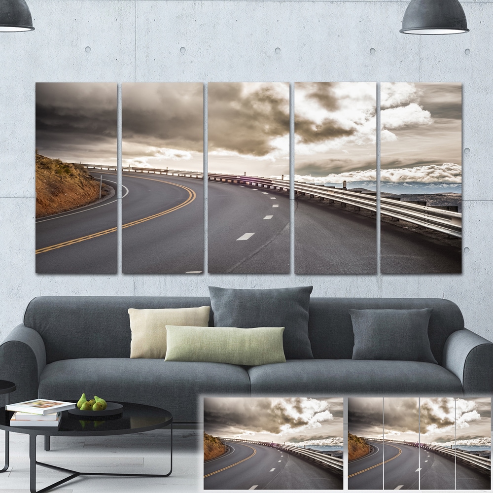 Designart "Sky Road Curve Landscape" Photo Canvas Print - Grey
