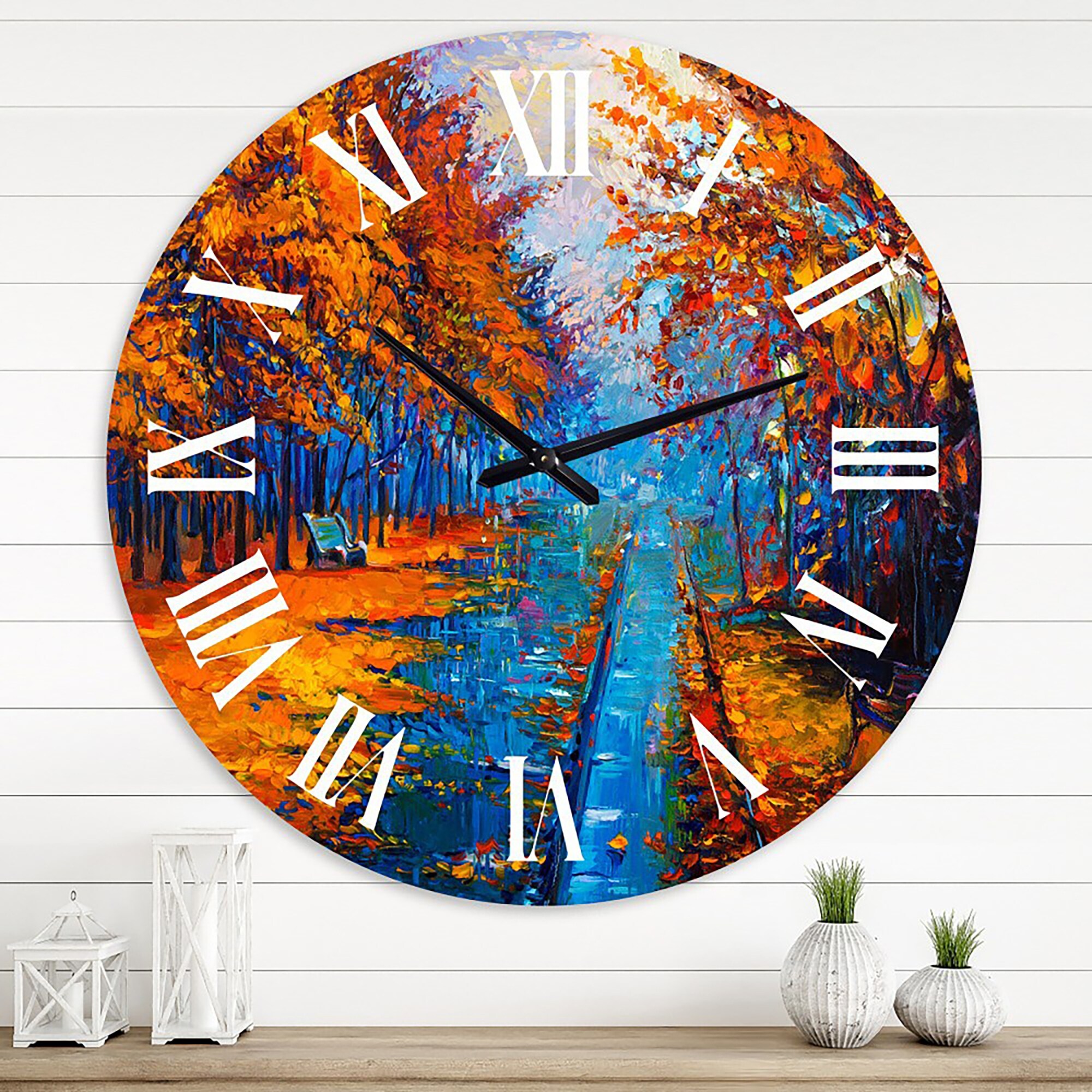 Designart 'Little Road Through Orange Autumn Landscape II' Traditional wall clock