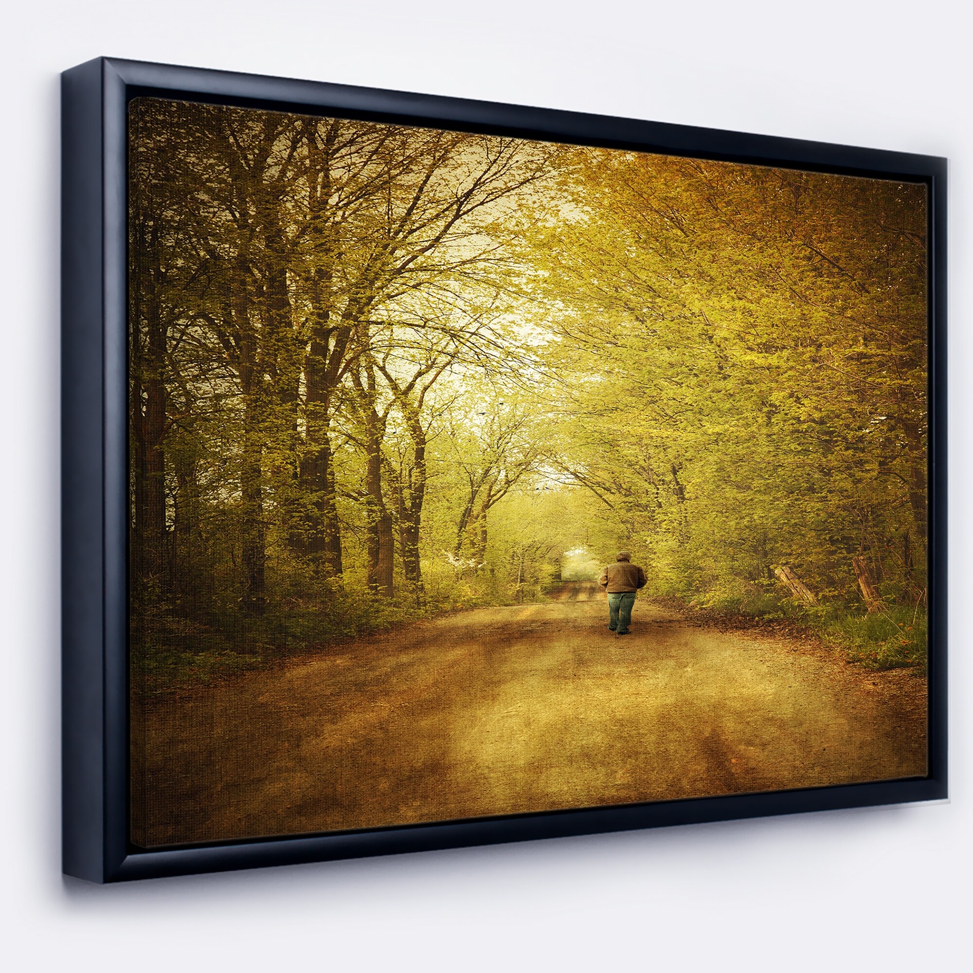 Designart "Man Walking Lonely on Rural Road" Landscape Framed Canvas Art Print