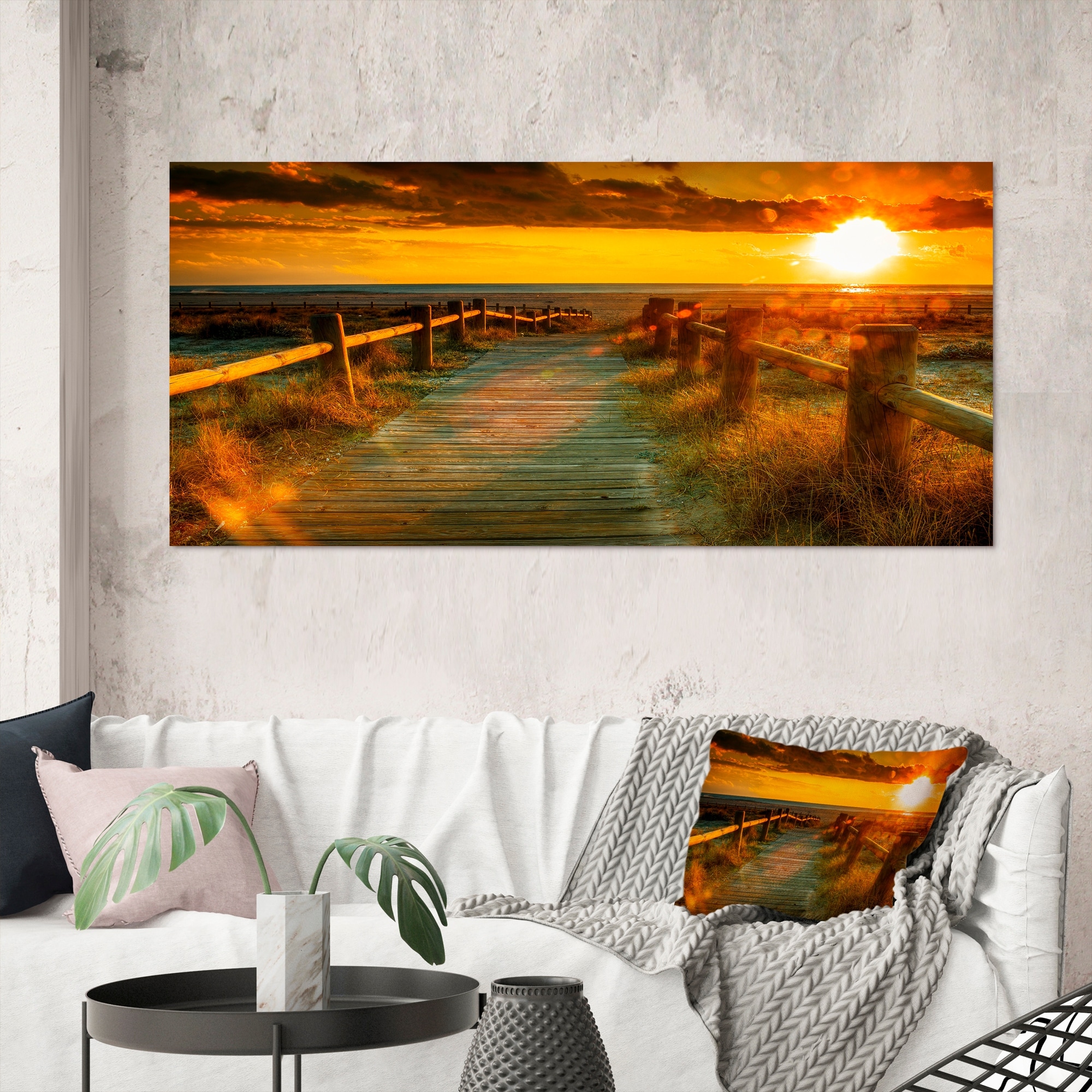 Designart "Little Road to the Beach During Sunset" Nautical & Coastal Canvas Wall Art Print