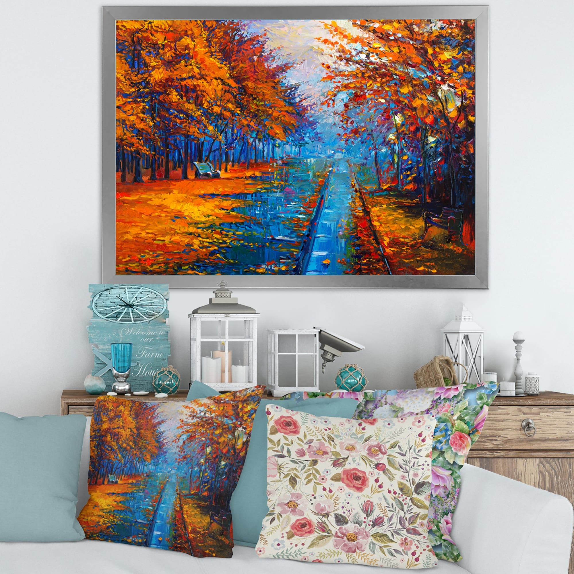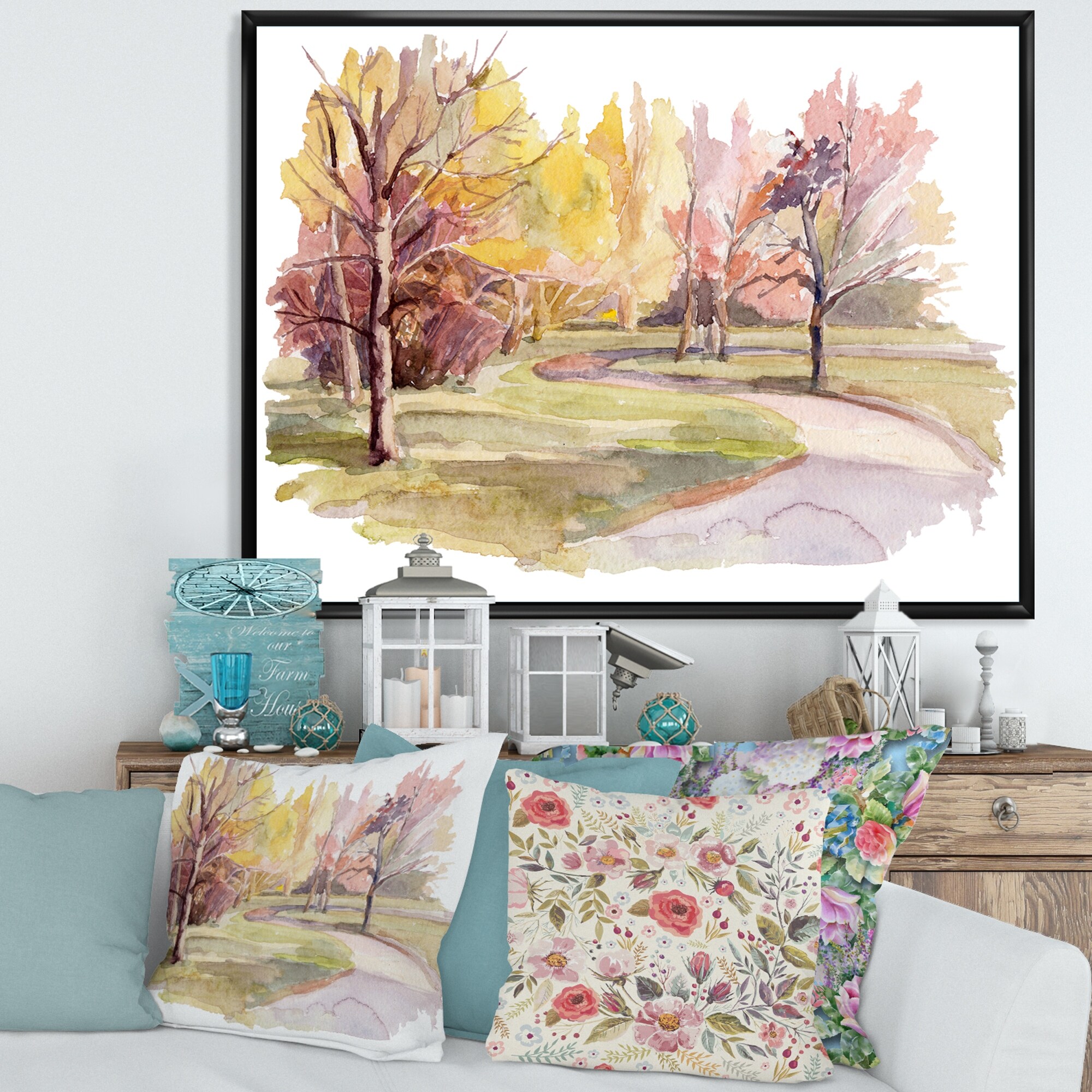 Designart "Park Road With Autumn Trees" Country Framed Canvas Wall Art Print