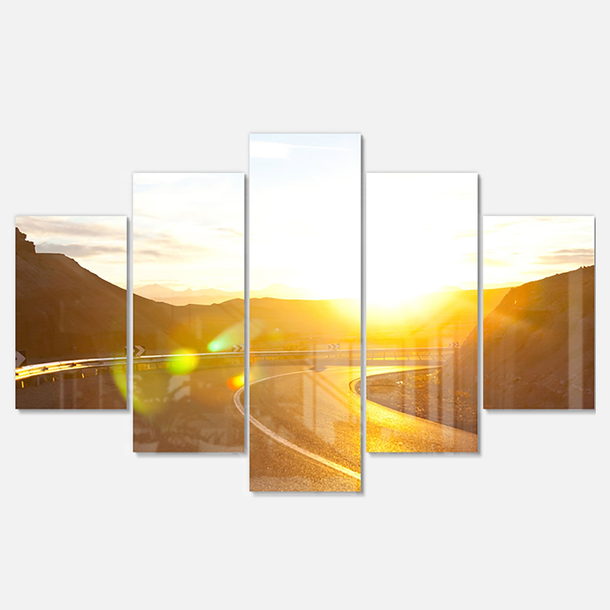 Designart 'Yellow Road under Sunset' Oversized Landscape Glossy Metal Wall Art