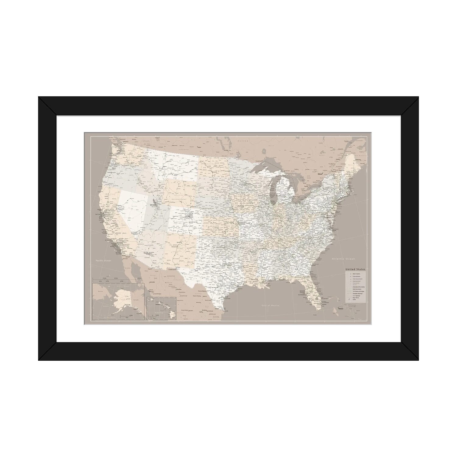 iCanvas "Highly Detailed Map of the Us With Roads in Brown" by blursbyai