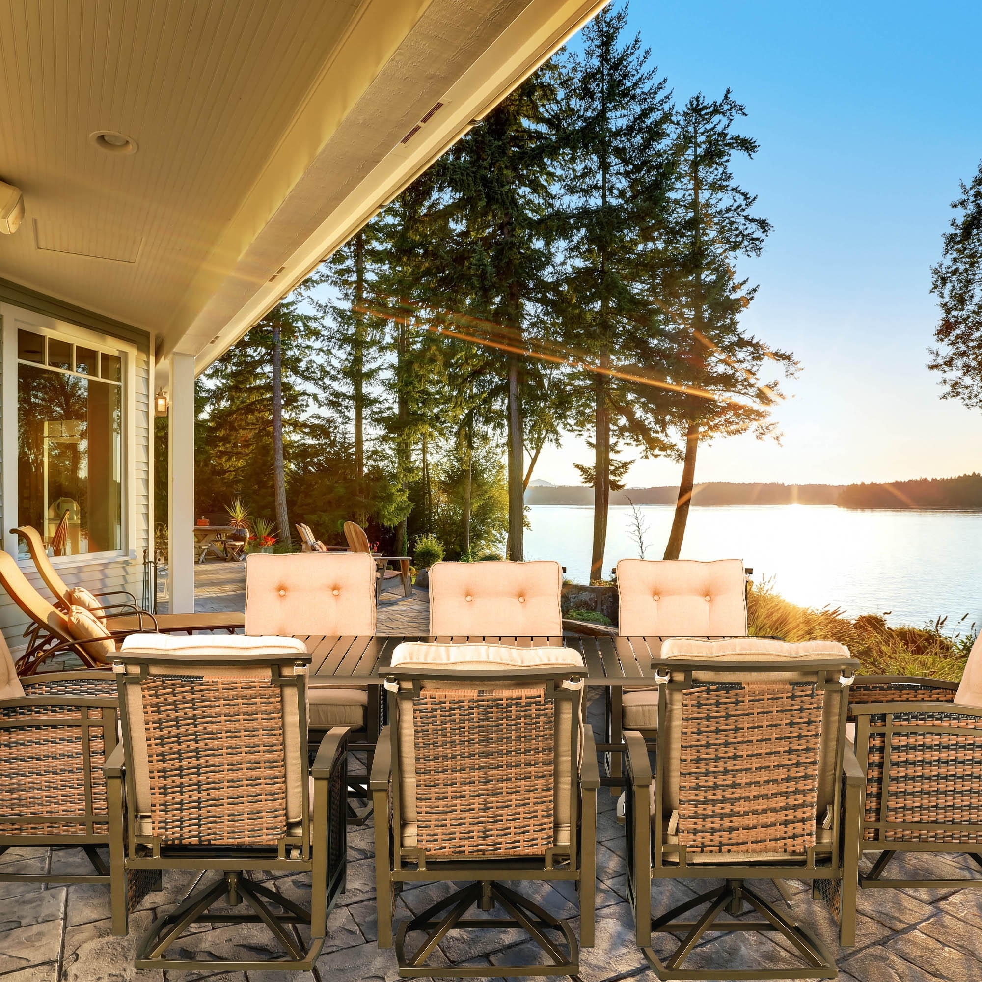 9pc Aluminum and Wicker Outdoor Palmetto Patio Dining Set with Cushions