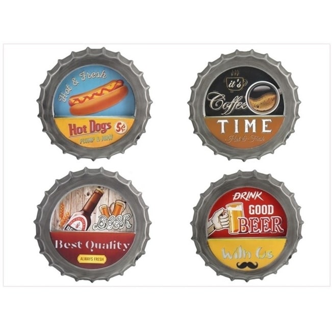 Set of 4 Light Up Bottle Cap Wall Decor - Medium