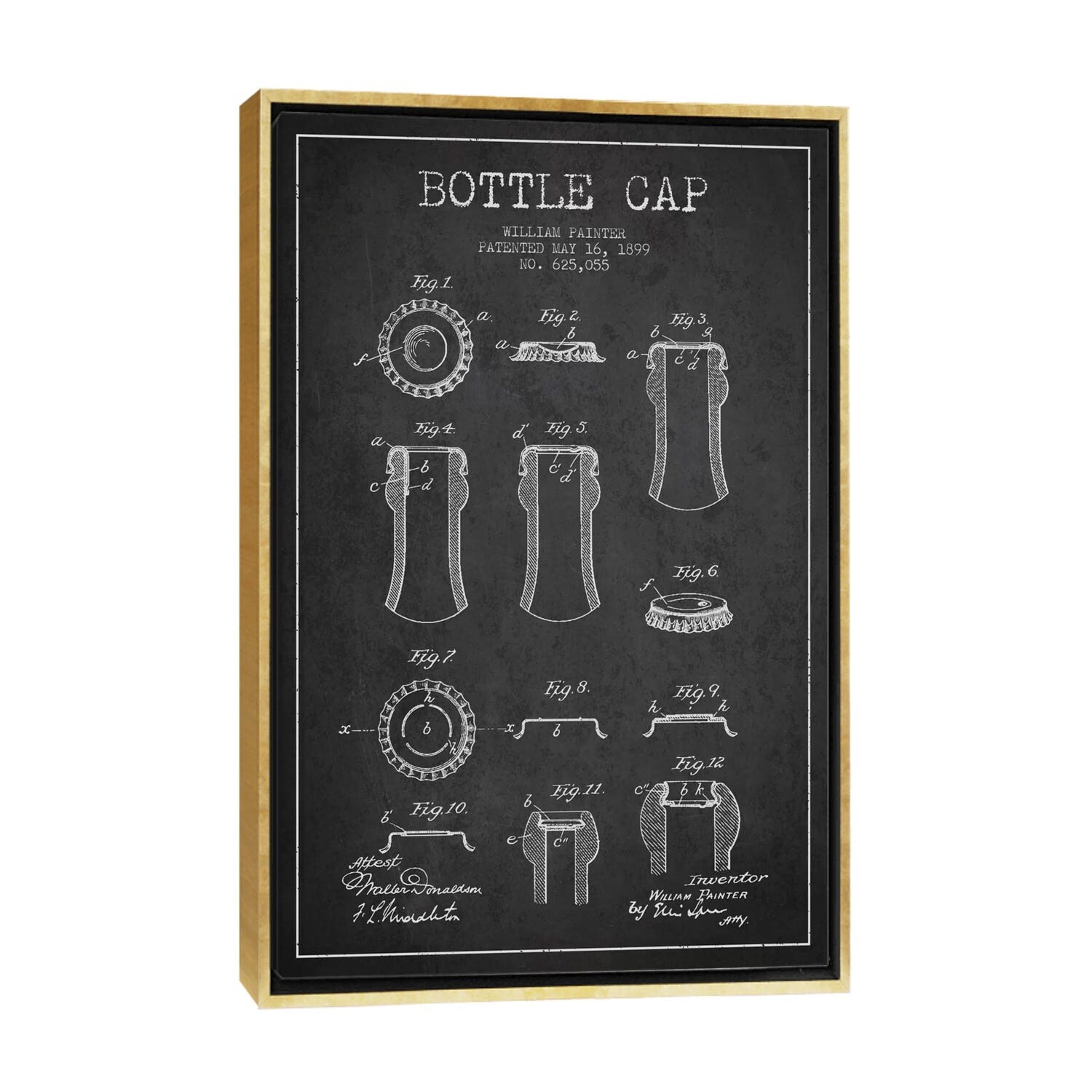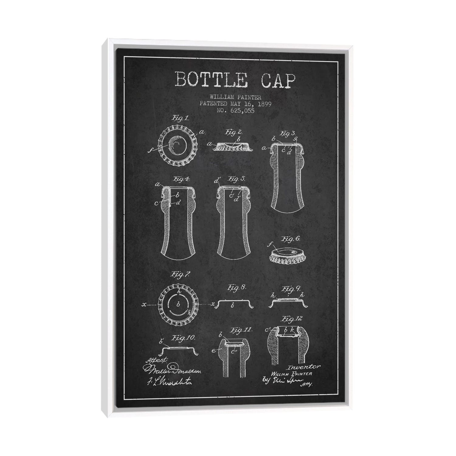 iCanvas "Bottle Cap Charcoal Patent Blueprint" by Aged Pixel Framed